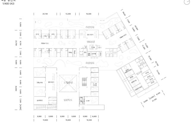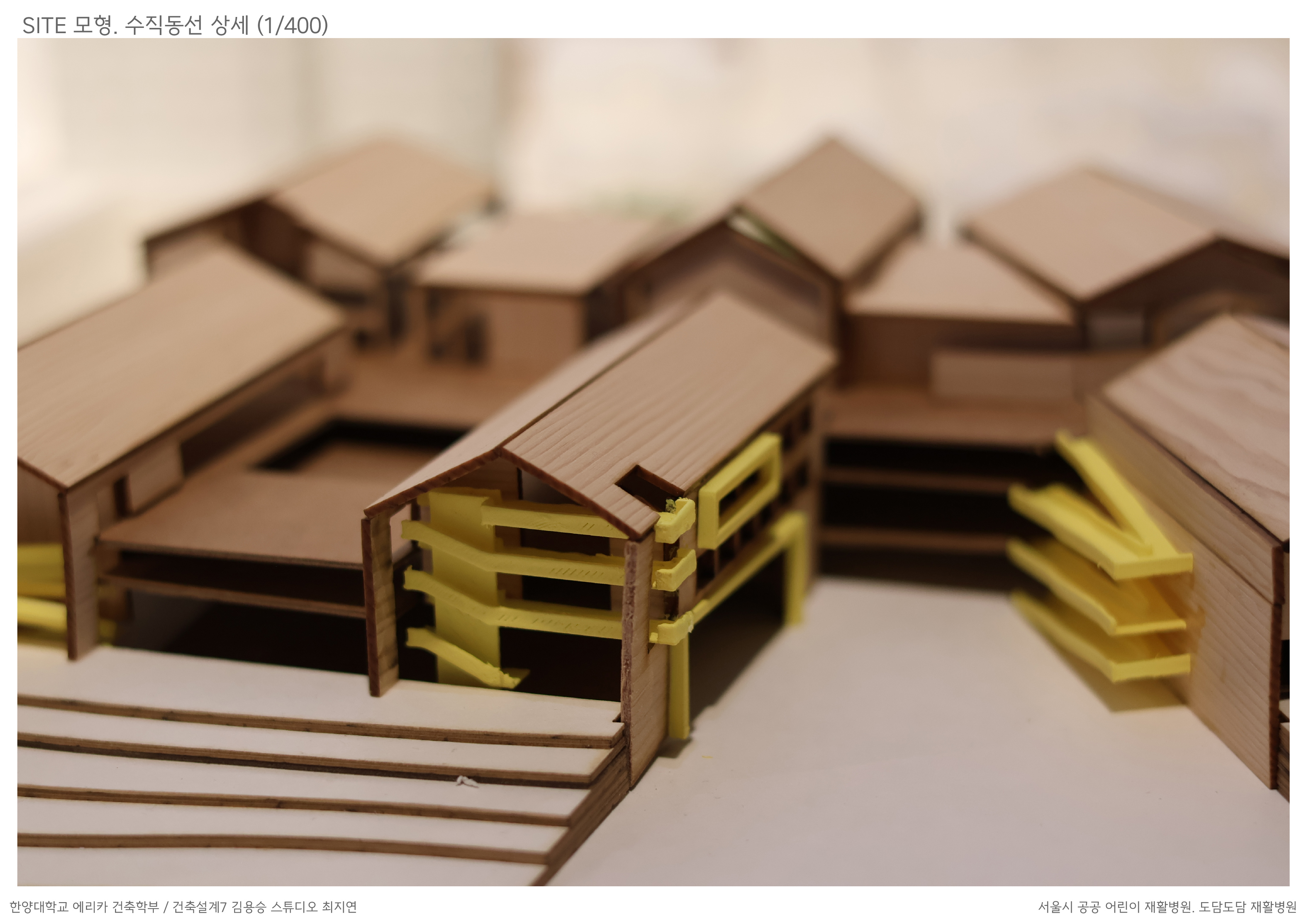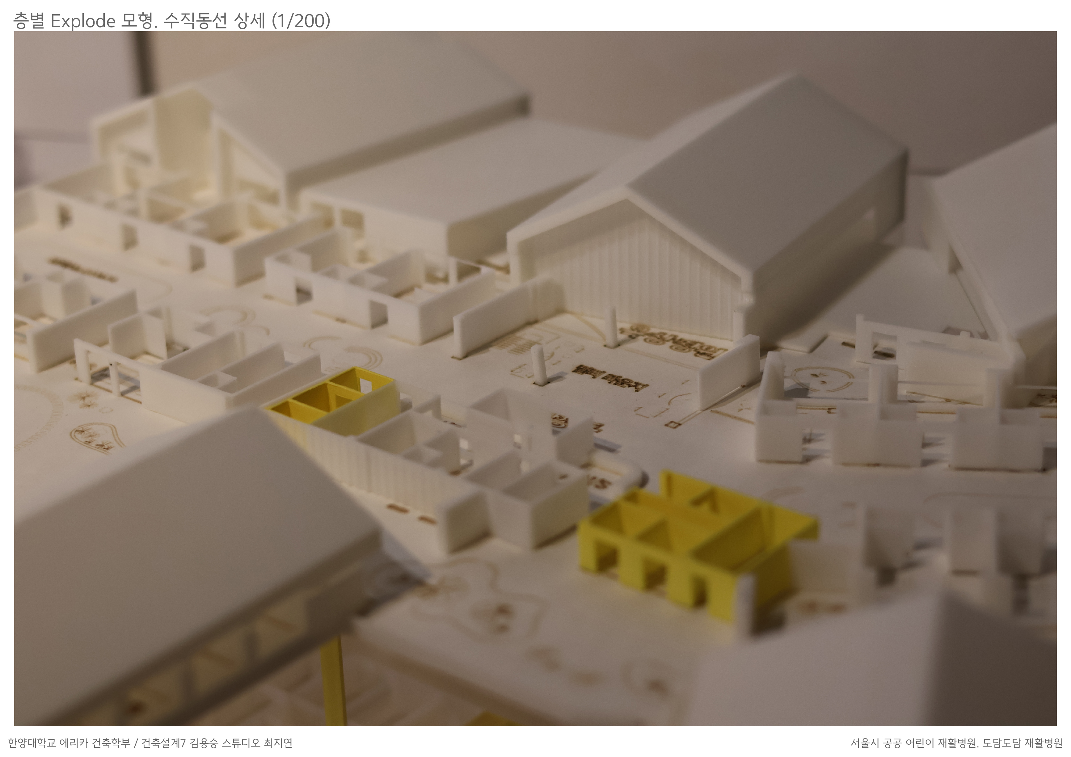 – 장애아동 병동부를 위에 배치하여 채광과 외부 정원 확보.
