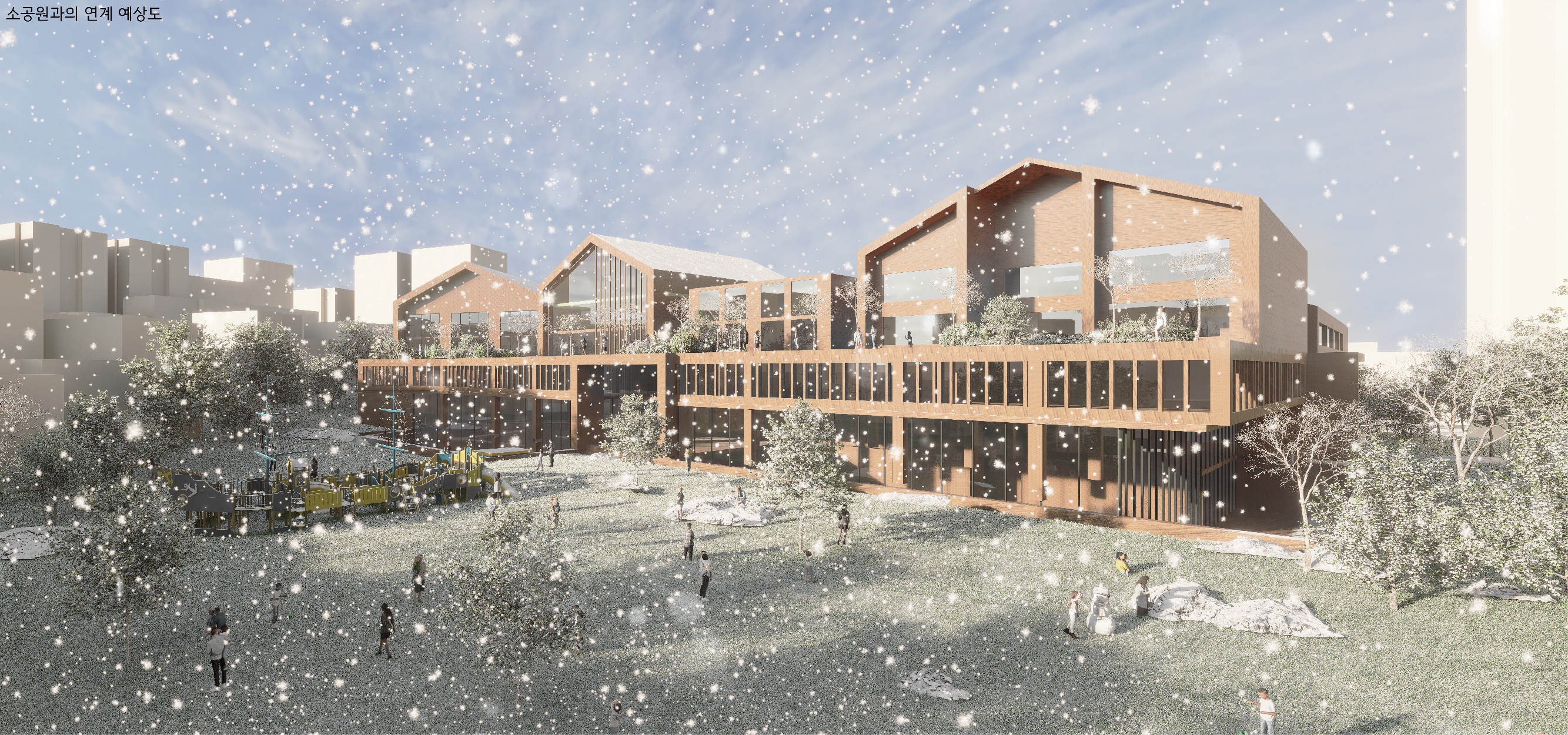 이러한 건물 형태를 형성하여 장애아동을 포함한 모든 사용자의 접근성과 편의성을 높이며, 자연과 조화를 이루는 친근한 공간을 형성할 수 있도록 계획했습니다.