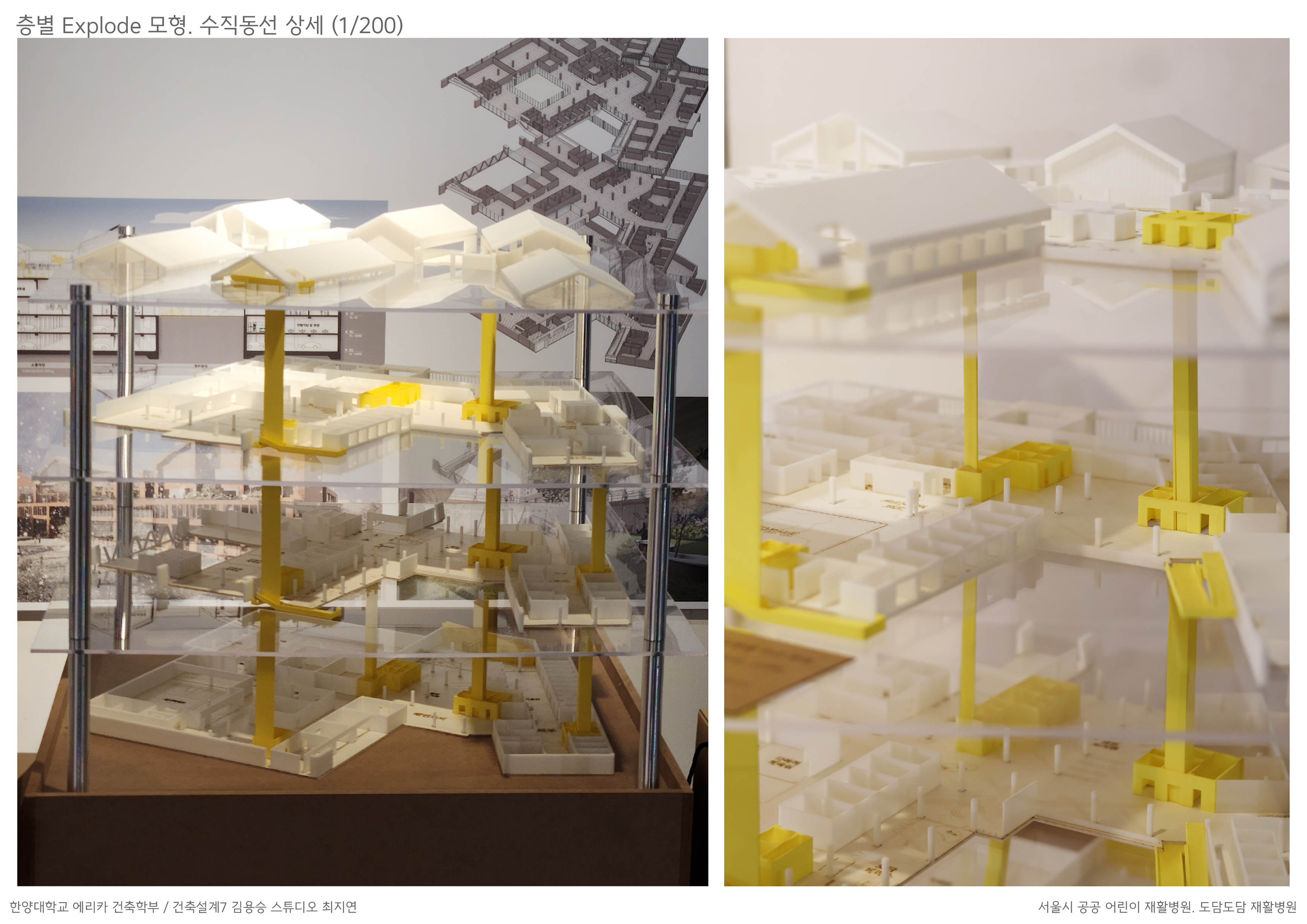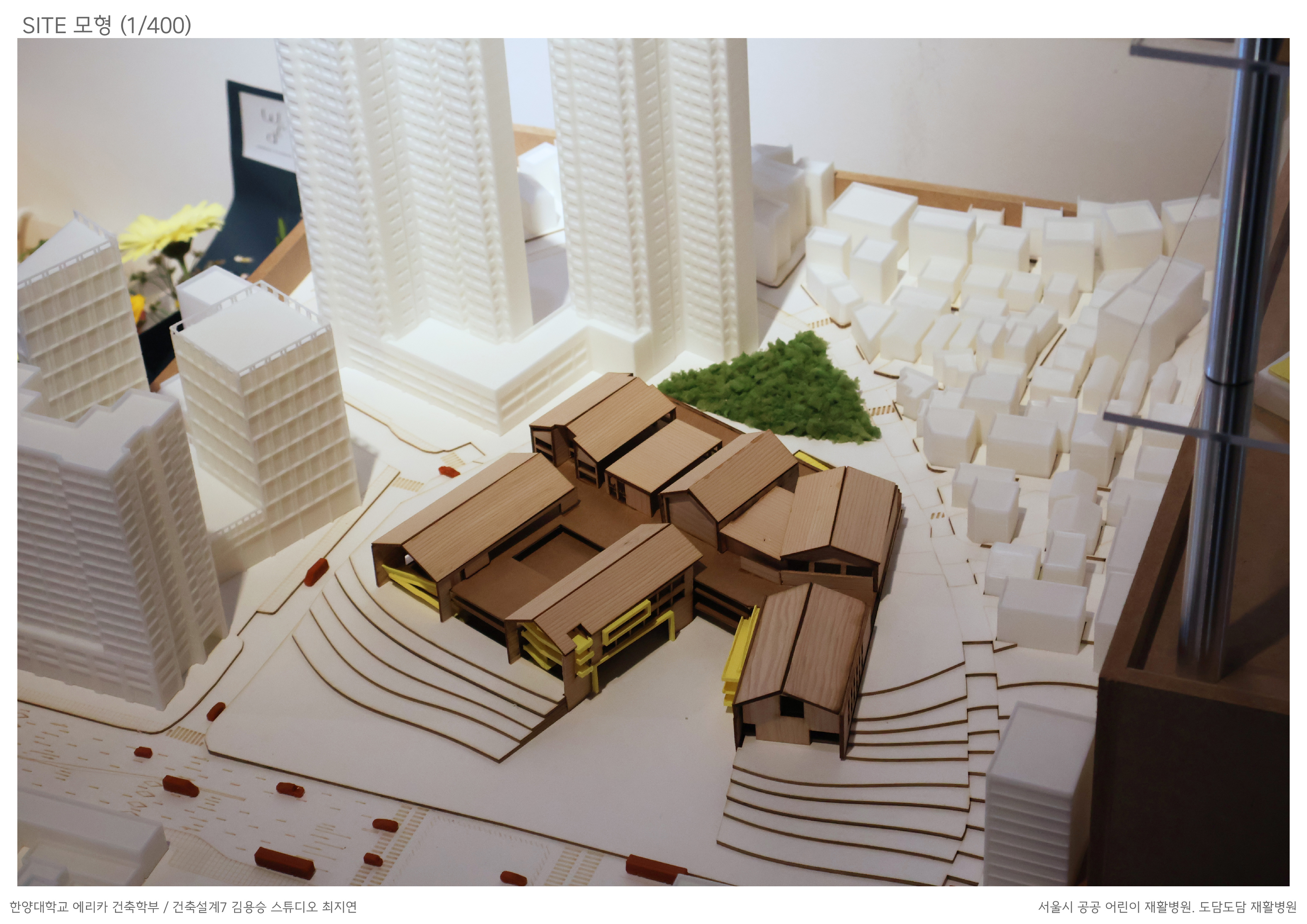 도담도담 재활병원은 서울시 공공 어린이 재활병원으로, 기존 구청 부지에 설립되어 주거지역 내 공공 어린이 병원이 갖추어야 할 프로그램과 공간을 고민하여 설계된 프로젝트입니다. 이 병원은 단순한 장애 아동 치료 시설을 넘어, 지역 주민들과 함께 누릴 수 있는 문화, 체육, 예술의 공간을 제공합니다. 모두가 어우러져 웃고 즐길 수 있는 복합 복지 시설로, 장애 관련 시설에 대한 편견을 없애고 공공 병원의 이미지를 새롭게 정의하였습니다. 주민들의 삶의 질을 높이고, 장애 아동과 지역 주민이 함께 성장하는 소중한 공간이 될 도담도담 어린이 재활병원은 세상의 모든 아이들을 위한 치유 공간이 될 것입니다.