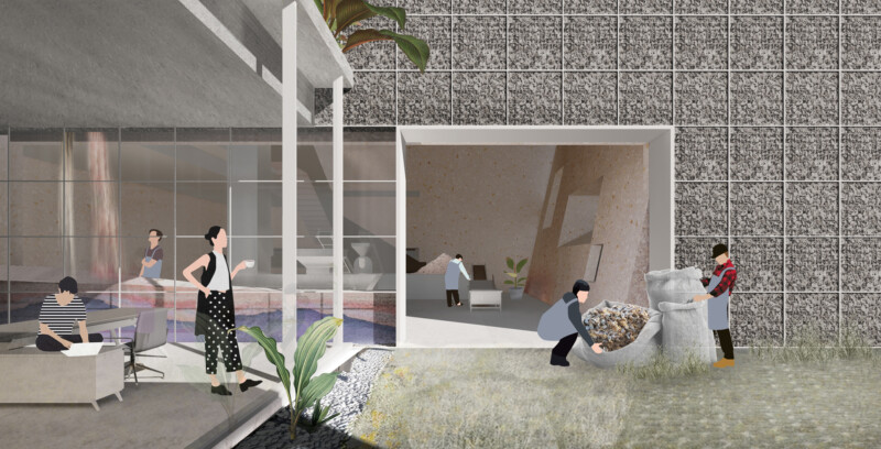 이곳에서 굴패각 폐기물은 즐거운 아이디어의 원천으로 새로이 탈바꿈되었다.