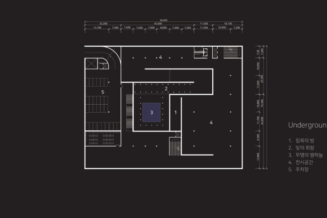 본 프로젝트의 디자인 과정은 효창공원의 역사성과 현재성을 함께 읽어내는 데서 출발했습니다. 먼저 대지의 맥락 분석을 통해 단절된 ‘기억의 축’을 복원하고, 외곽에서 중심으로 점차 진입하는 순례적 동선 구조를 설정했습니다. 이어 각 지점의 감정 밀도를 시뮬레이션하여, 빛·음향·재질·지형 변화가 방문자의 심리 흐름에 맞춰 점진적으로 고조되도록 계획했습니다. 1층에서는 ‘기억의 문턱’, ‘메모리얼 홀’, ‘기억의 서가’를 배치해 일상에서 기념으로 전환되는 준비의 공간을 구성했고, 지하로 내려가는 하강 경로에서는 조도를 낮추고 소리를 차단해 내면 침잠을 유도했습니다. 지하 1층에는 ‘침묵의 방’, ‘빛의 회랑’, ‘무명의 별하늘’, ‘지혜의 물결’을 순차적으로 배치하여 정서–각성–성찰이 이어지는 연속적 경험을 만들었으며, 마지막 전시공간에서 감정과 인식을 연결했습니다. 또한 외부 공간에는 배롱나무 숲, 사색정원, 자유광장 등 일상적 풍경을 배치해, 시민이 무심히 드나들어도 기억의 경로를 자연스럽게 경험하도록 설계했습니다. 이처럼 디자인은 상징적 형태보다 경험의 흐름과 감정의 농도를 설계하는 데 집중하며, 대지 전체를 하나의 살아있는 기념관으로 완성합니다.