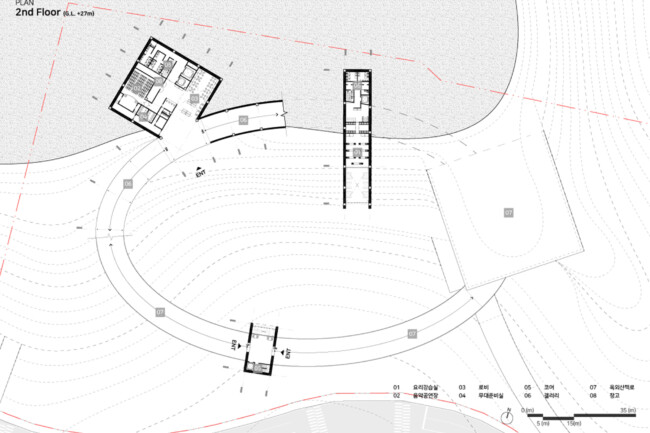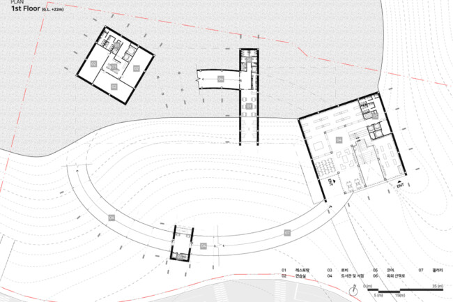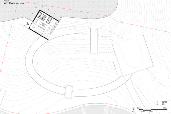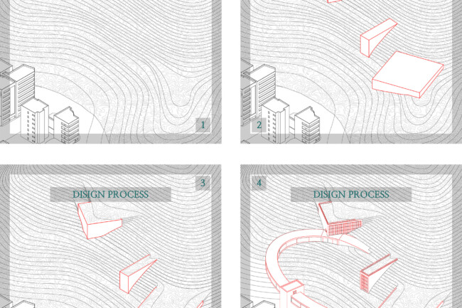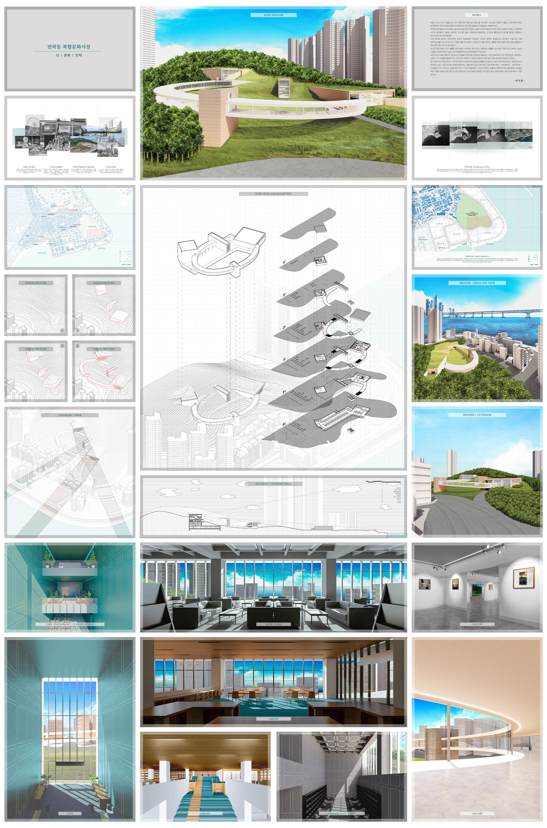 산이라는 특성상 높은 레벨에서 바다, 광안대교 및 마린시티를 볼 수 있다. 하지만 주변의 건물들에 막혀 이 뷰를 가져갈 수 있는 공간은 한정되어있다. 이 공간들을 찾아 프로그램을 뿌려주어 산을 등산하며 다양한 프로그램과 뷰를 즐길 수 있게 하고자 하였고, 링(갤러리)을 통해 공간을 연결하여 내부와 외부를 거닐며 사이트, 주변 경관 및 내부를 모두 경험할 수 있게끔 만들어주었다.