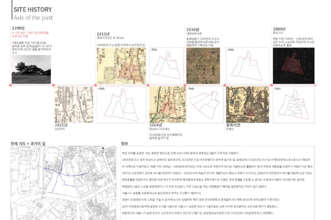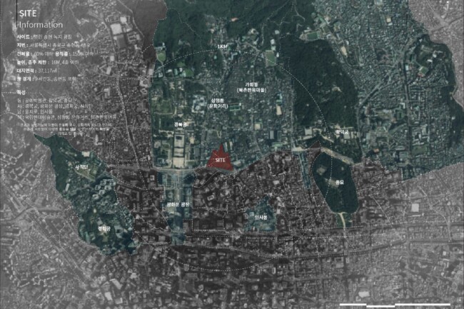 조선시대와 현재까지의 여러 논쟁을 포함하는 110년간의 역사가 개방된 금단의 부지에 보다 도시적 스케일로 접근하여 종로구를 포괄할 수 있는 프로그램을 선정했고, 과거의 모습을 일부 회복시킬 수 있는 건축적 행위로 조경과 입면으로 표상시키고자 했으며, 앞으로 생길 수 없는 서울 대로변의 거대 녹지라는 관점에서 비교적 녹지의 비율을 크게 하여 도시 경관의 보이드를 제공하고자 했고, 매스는 북악산과 인왕산의 산세, 남쪽으로의 도시경관에 어우러질 수 있는 랜드스케이프를 적용하여, 매스의 내부와 외부를 한바퀴 두르며 공간을 경험하고, 원하는 종로의 여행지로 나아갔으면 했다.