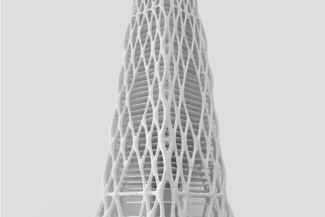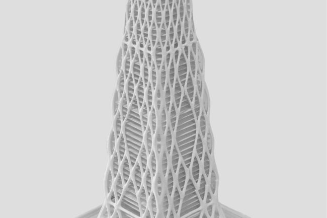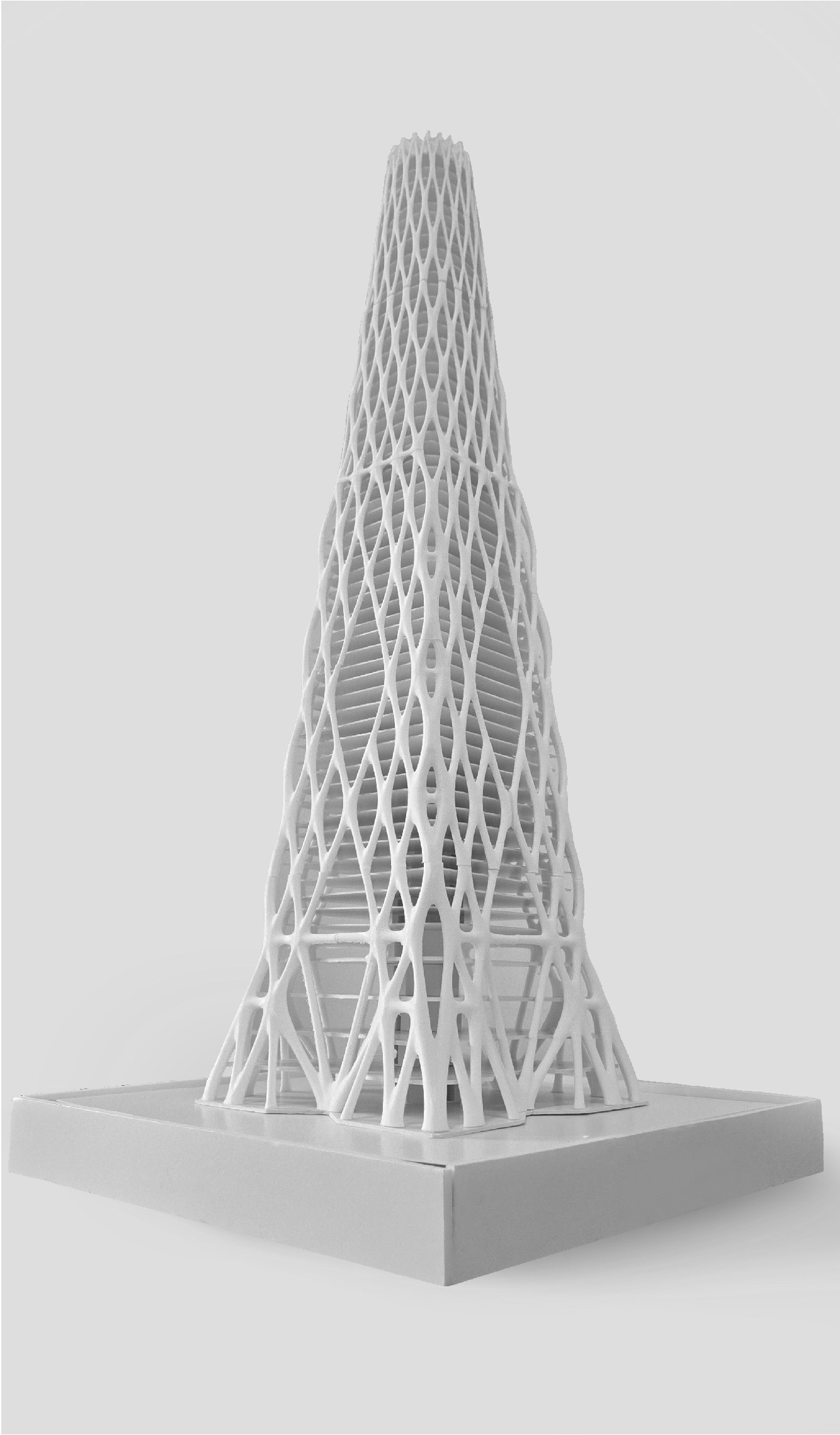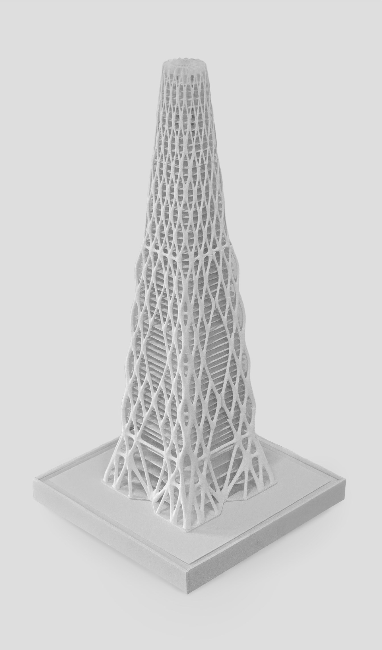 Exploration of a high-rise architectural typology constructed through additive manufacturing. This proposal imagines a vertically integrated urban system using 3D printing as both concept and method.
