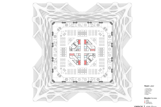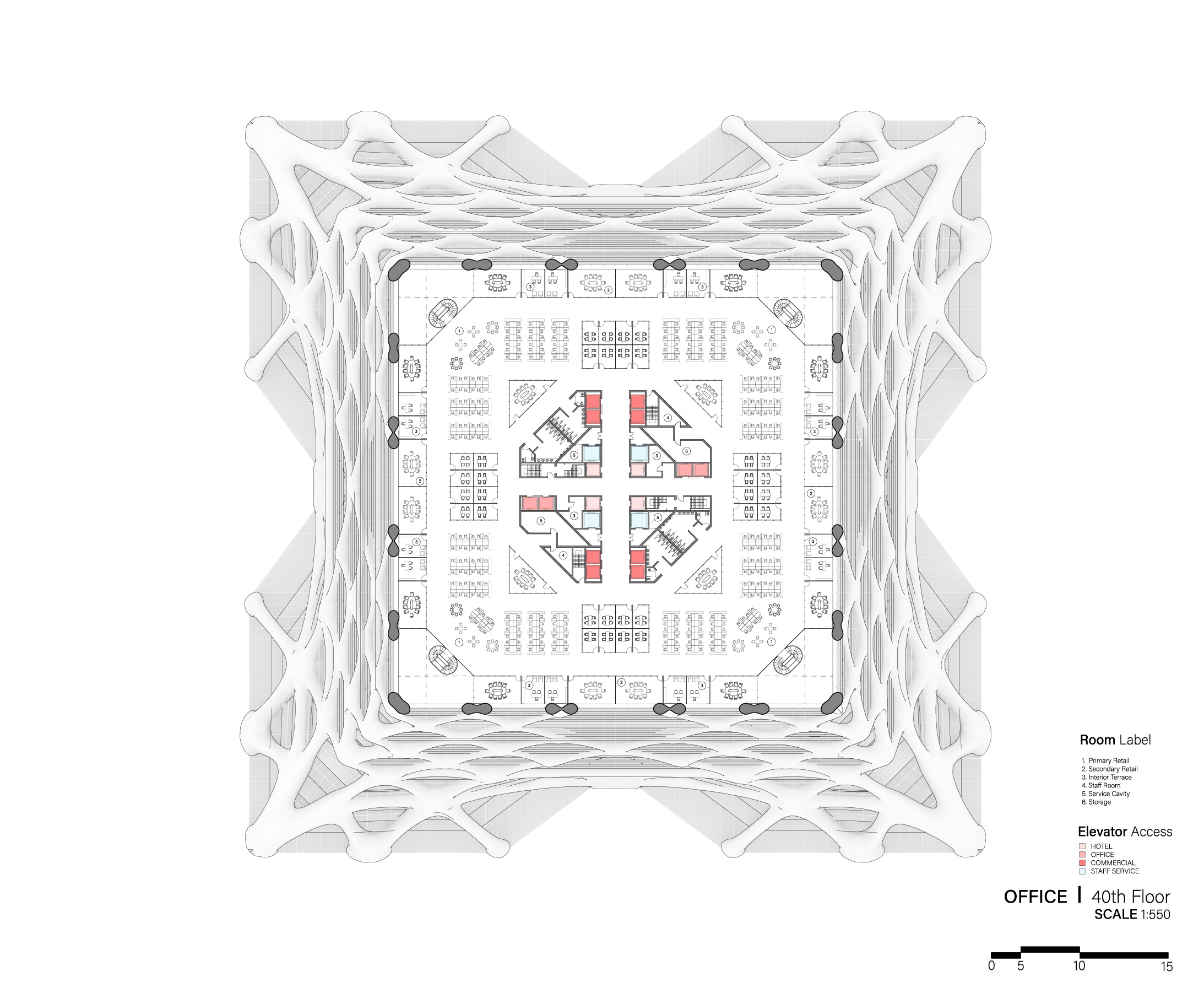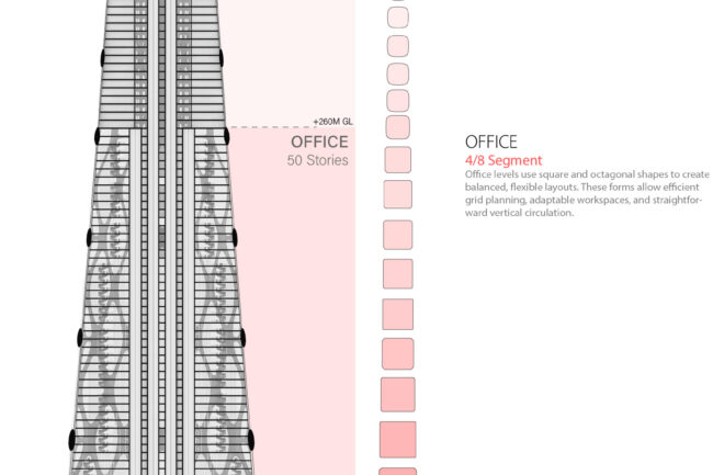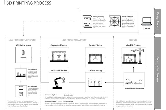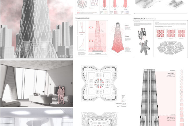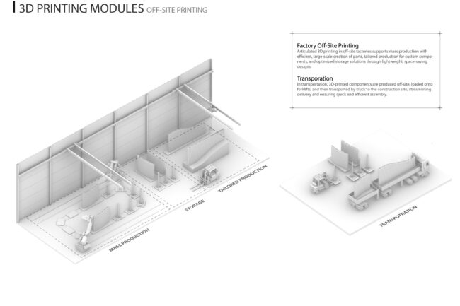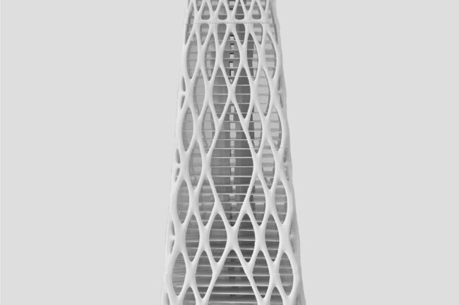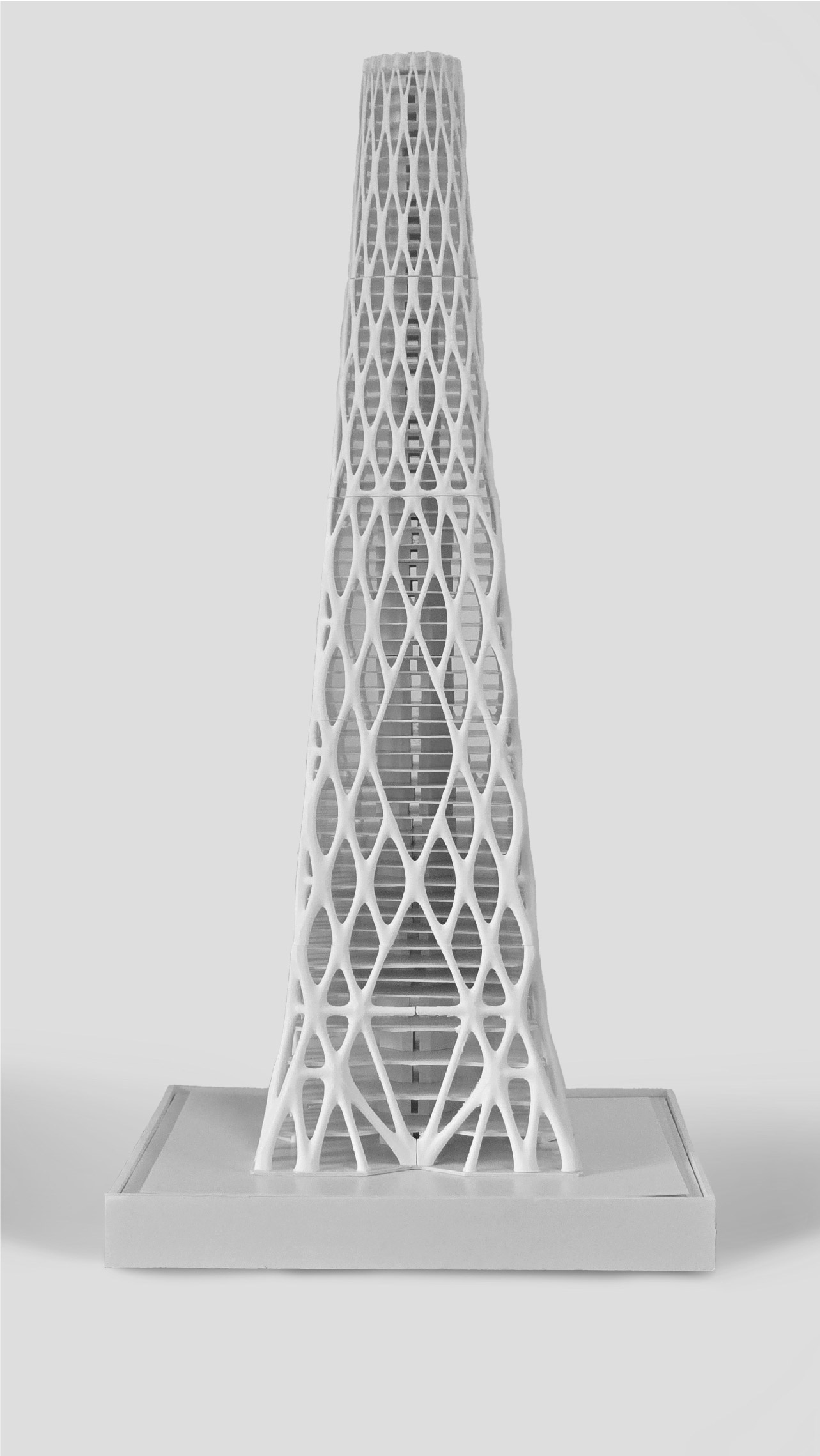 Exploration of a high-rise architectural typology constructed through additive manufacturing. This proposal imagines a vertically integrated urban system using 3D printing as both concept and method.