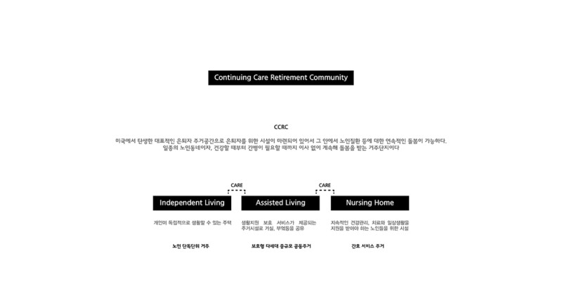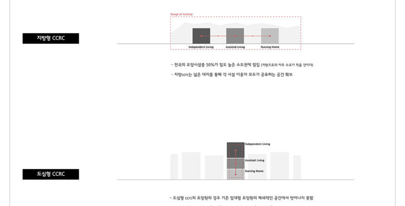 이를 바탕으로 프로젝트를 진행함에 있어 요양시설에 입소하는 노인들에 대한 새로운 정의를 시작으로 기존 폐쇄적인 성격의 요양시설과는 다른 개방적인 요양시설을 계획하고자 하였다.