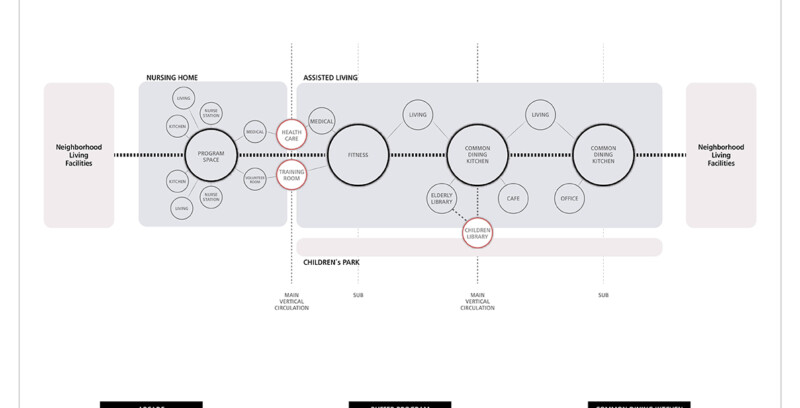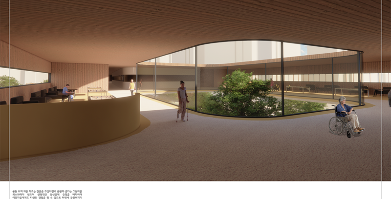 이상적인 요양시설은 요양보호사들에 의해 노인들이 관리되는 것이 아닌 노인들이 직접 움직이면서 요양시설을 노인 거주 시설로서 운영되게 요양보호사들이 도와주는 시설이여야 한다. 또한 기존 요양시설은 외부에서 사람들이 방문하여 프로그램이 운영되고 외부에서 들어오는 구조였다면, 새로운 요양시설은 노인들이 거동에 불편함이 있더라도 보호사들의 도움을 받아 시설 내의 프로그램을 이용하기 위해 움직이게 하고 지역에서 제공하는 여러 컨텐츠들을 노인들이 직접 시설 밖으로 나가 이용할 수 있는 환경을 제공하는 것이라 생각하면서 프로젝트를 진행하였다.
