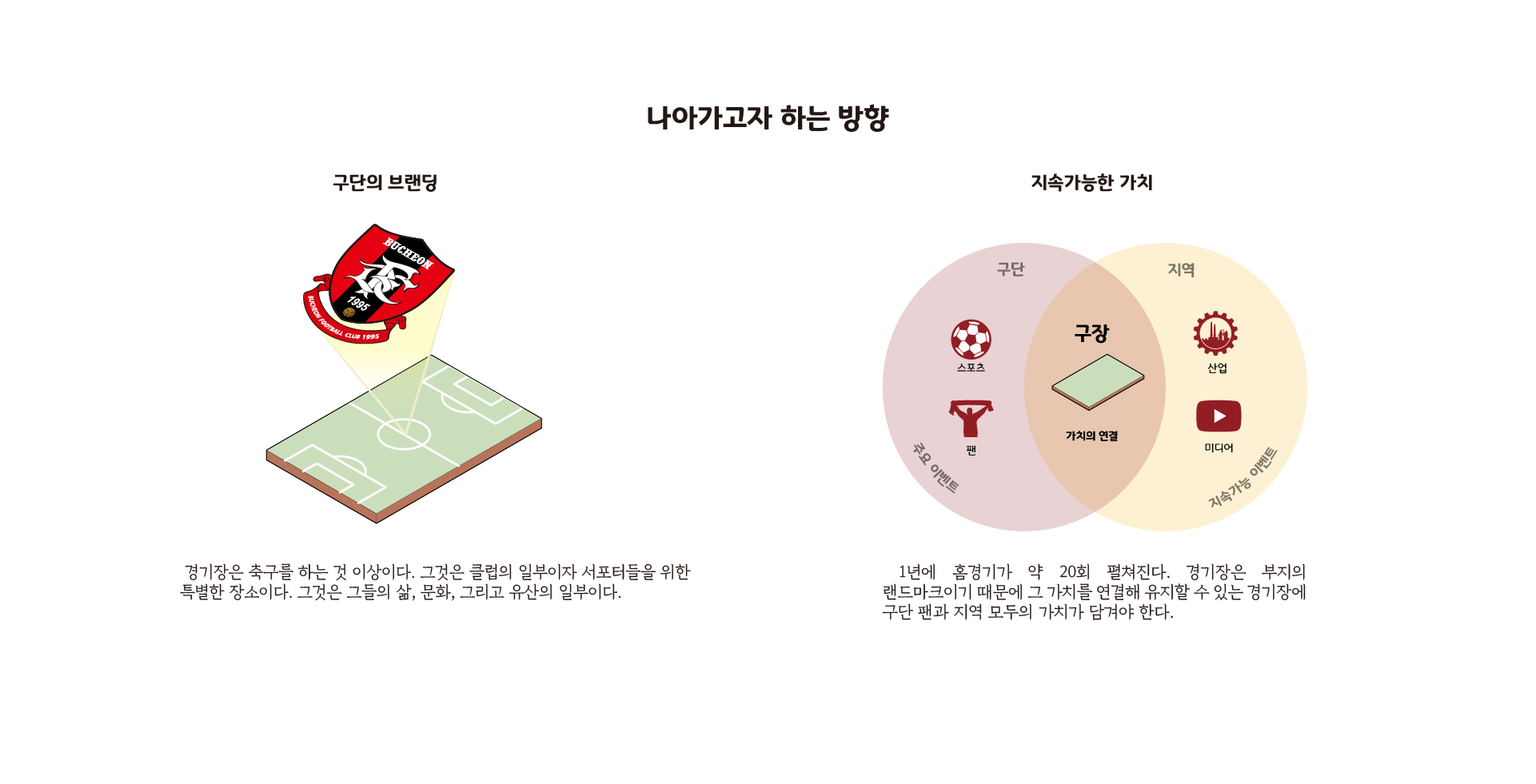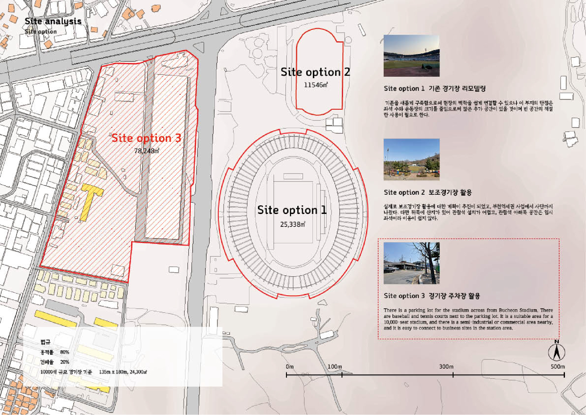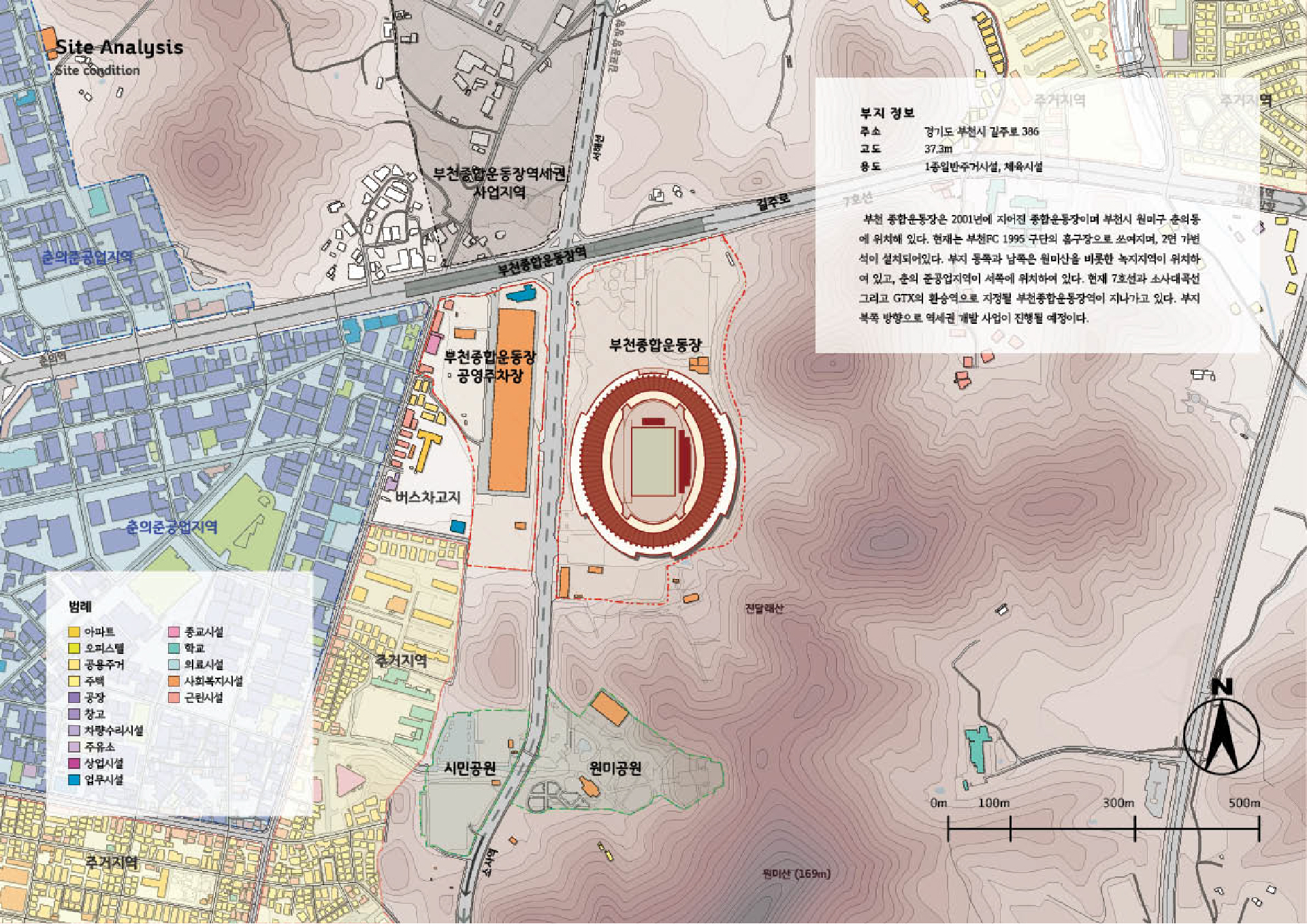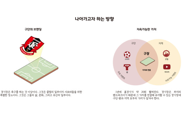현재 K리그2에 있는 부천FC 1995는 부천종합운동장을 홈구장으로 쓰고 있다. 현재 국내 프로축구에는 많은 구단들이 축구전용구장을 추진하고 있고 부천 또한 마찬가지이다. 현재 홈구장으로 쓰는 부천종합운동장은 30000석 규모의 육상트랙을 갖춘 종합운동장이다. 종합운동장은 시야적인 부분과 관중동원 밀도 부분에서 문제점을 가지고 있고, 현재 사용하고 있는 가변석 또한 경기장이 가질 수 있는 최대 관중을 유치하지 못하는 한계가 있다. 또한 경기장은 경기 뿐만아닌 팬들과 구단의 역사와 추억을 담고 있는 곳이기에 문화와 역사를 위한 공간으로 설계를 하고자 한다. 평균 관중 수에 맞춰 10000명 대로 규모를 맞추고 없는 날에는 경기장을 활용하고 시민의 공간으로 사용할 수 있도록 하며, 구단과 팬의 가치를 담을 수 있는 방향으로 프로젝트를 시작한다.