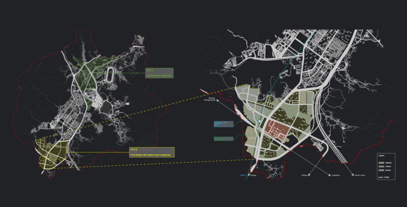 기능을 잃은 도시가 다시금 도시의 기능을 하기 위해서는 어떻게 하여야 할까? 기존의 행정도시로서의 기능이 아닌 새로운 기능을 할 수 있게 하고자 한다면 어떻게 건축적인 해결방안을 제시할 수 있을지에 대한 생각에서 이 프로젝트를 시작하게 되었다. 새로이 개발되는 신도시 지역을 기준으로 하여 과천시에서 상업, 문화 등의 기존과는 다른 유형의 기능을 할 수 있는 요소를 제공하여 행정도시가 아닌 문화도시로 나아갈 수 있는 가능성을 제시해보고자 한다.