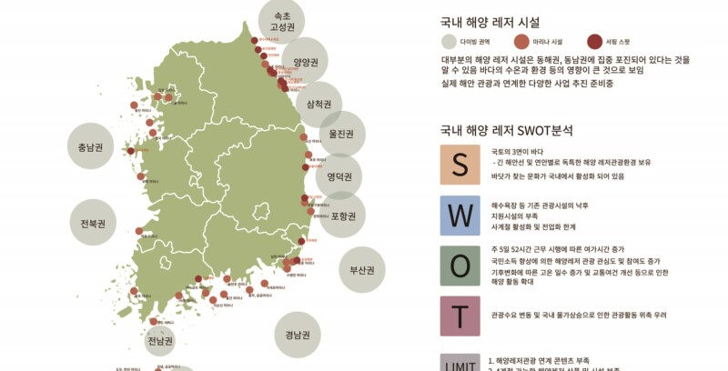 여가를 위해 해양 환경을 이용하는 사람들의 수에 비해 해양 시설들은 매우 열악하다. 이는 사계절이 뚜렷한 한국의 특징과도 연관이 있을 것이다. 대부분의 해양 여가 문화와 해양 레저 스포츠는 여름에 일어나며 수요도 대부분 여름에 치우쳐 있다. 그렇기에 여름에 한시적 이용을 위한 시설인 해양의 시설들은 열악할 수 밖에 없다.