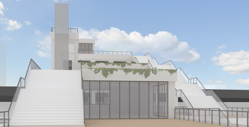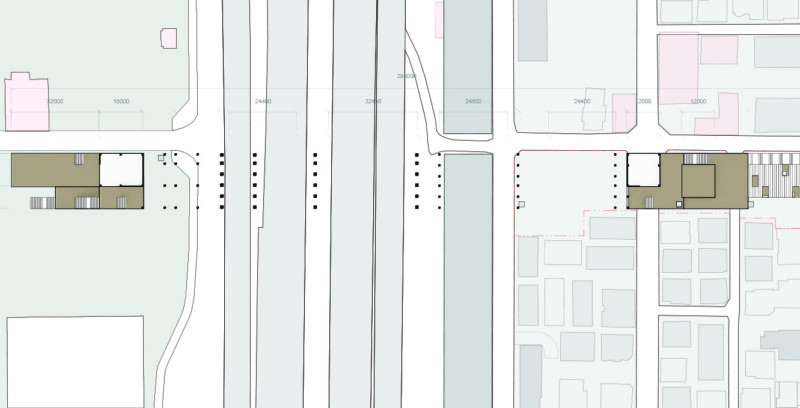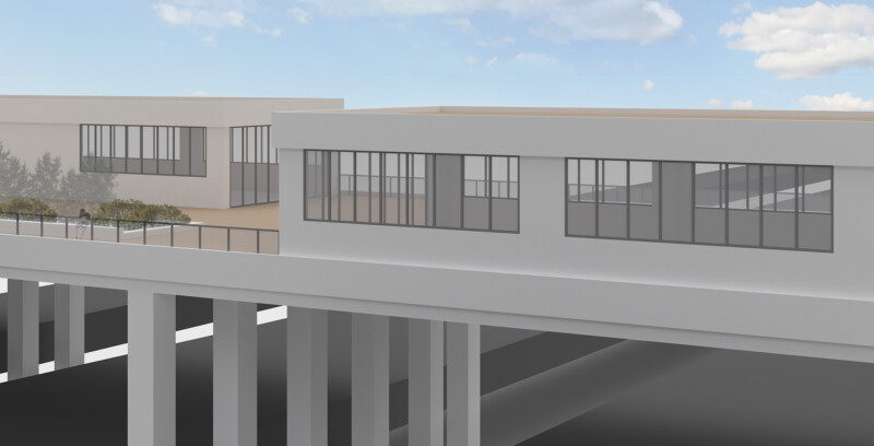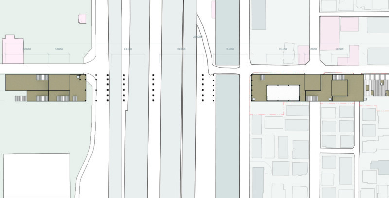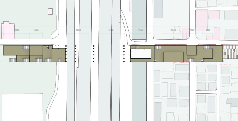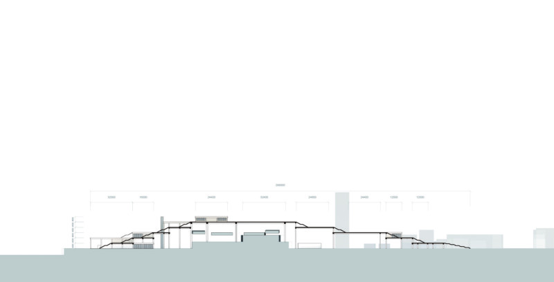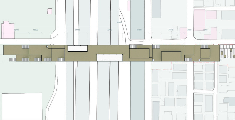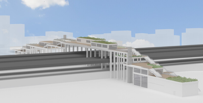 길이 약 300m, 폭 20m, 높이 24m의 선형 공원과 같은 건물을 통해 이를 극복해 보고자 했다.
