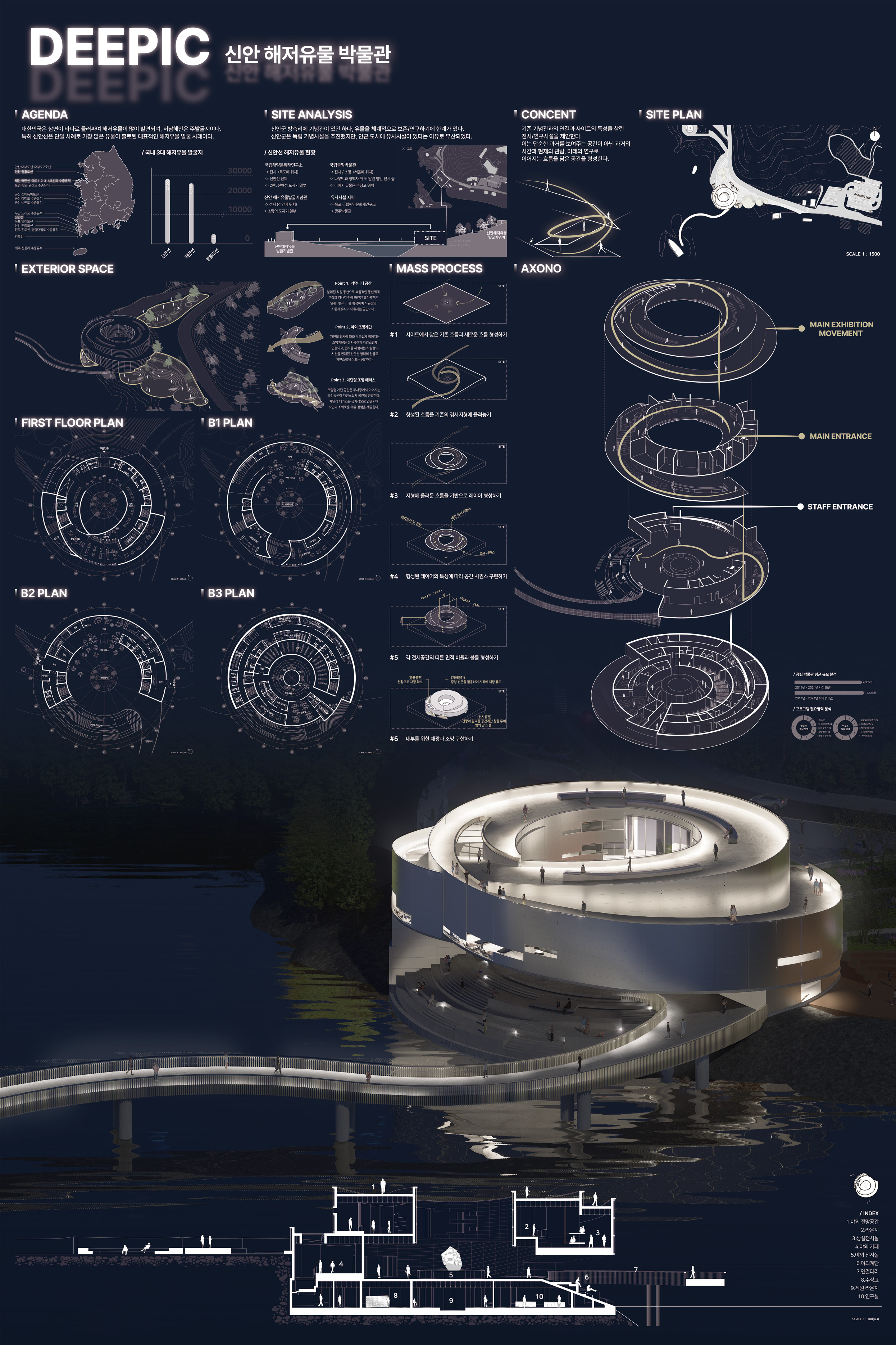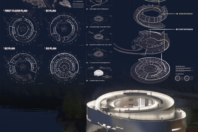 이 프로젝트는 바다와 지역환경을 해치지 않으며, 전시와 연구가 공존하는 박물관을 제안한다.