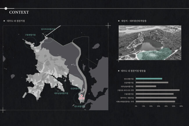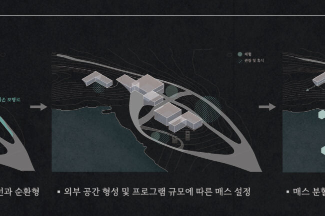 특정 장소의 이미지는 시간의 흐름에 따라 변화한 시대의 징표이다. 장소에 대한 기억은 ‘물리적 흔적’, ‘장소의 분위기’, ‘기념물’과 같은 기억을 상기시켜주는 매개체로 인해 재현되어진다. 박물관은 본래 특정 주제를 전시하고 기억하는 취지에 가장 부합한 공간이나, 정작 그 공간 내에서만 존재하여 박물관을 나서는 순간, 기억이 휘발되기 쉽다. 따라서 박물관 내의 한정된 공간을 넘어 자연적 맥락과 함께 내외부의 상호작용을 강조한 새로운 유형의 박물관을 설계하고자 한다.