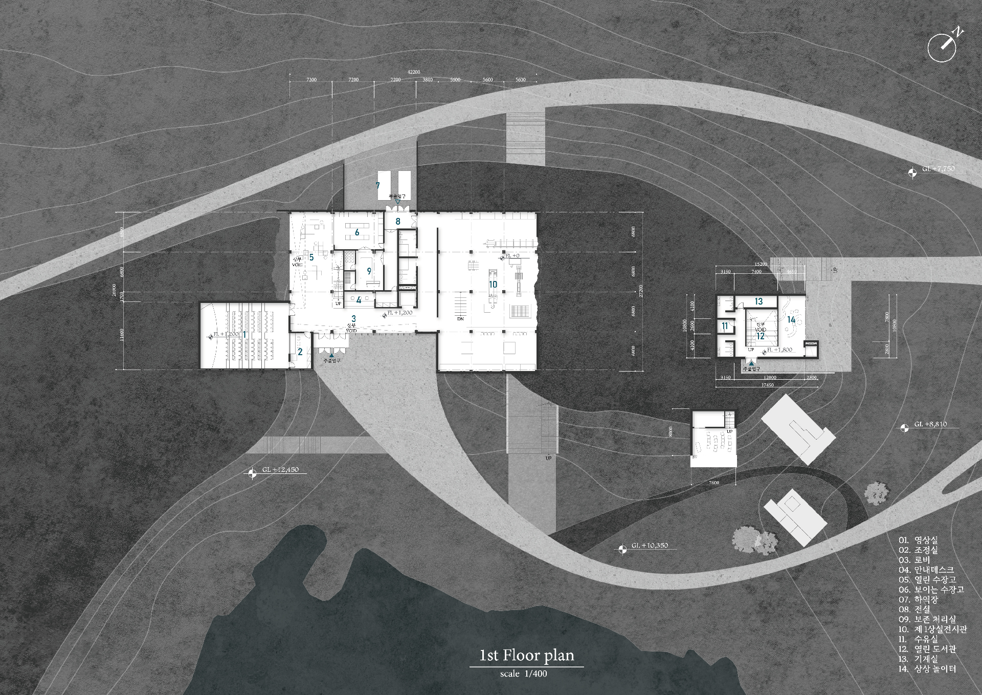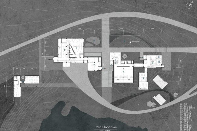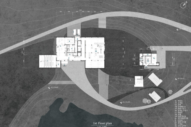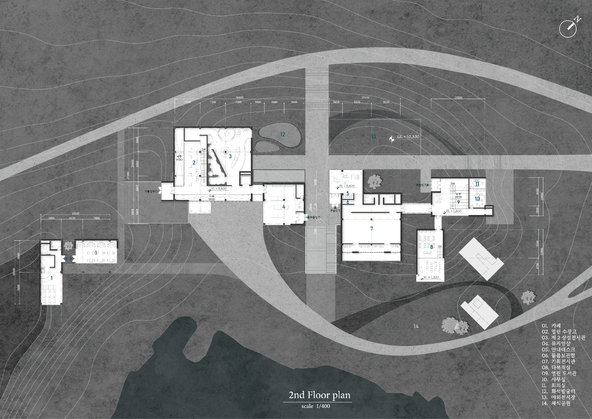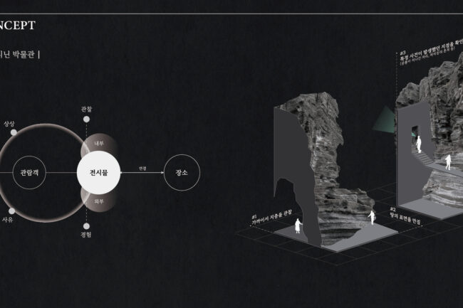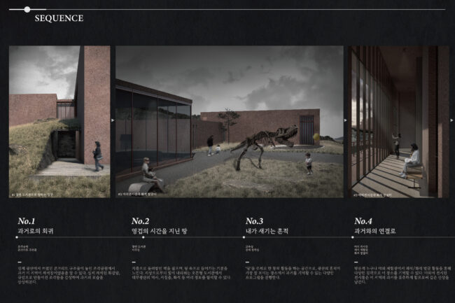 대상지의 가장 중요한 전시물은 ‘자연물’ 그 자체이다. 박물관의 전시는 내부에만 한정되어있지 않으며, 일방적 관람이 아닌 전시물(자연)과 상호작용 가능한 관람을 우선시한다. 이 과정 속에서 건축물은 자연과 인간의 매개체이며 땅에 대한 기억을 상기시키고 풍부한 감상이 이루어지도록 돕는다.