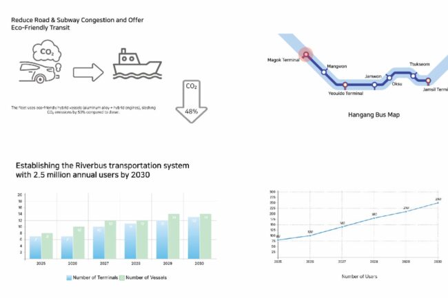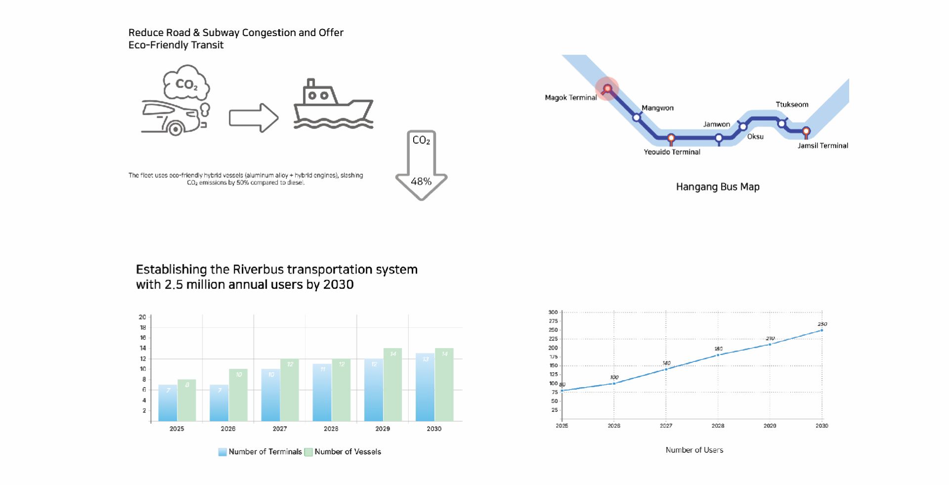 저의 졸업 설계는 서울시의 한강 수상버스 도입 발표에서 시작되었습니다. 서울시는 2030년까지 연간 250만 명의 이용을 목표로 하며, 친환경 한강버스를 통해 대중교통의 혼잡을 해소하고 친환경 이동 수단을 확대하고자 합니다. 한강 버스는 마곡에서 잠실 까지 운영하는데 현재 건설 중인 여의도 정류장만 있어서 제가 시작점 마곡 정류장에서 한강 버스 타미널을 제안하려고 합니다.