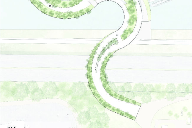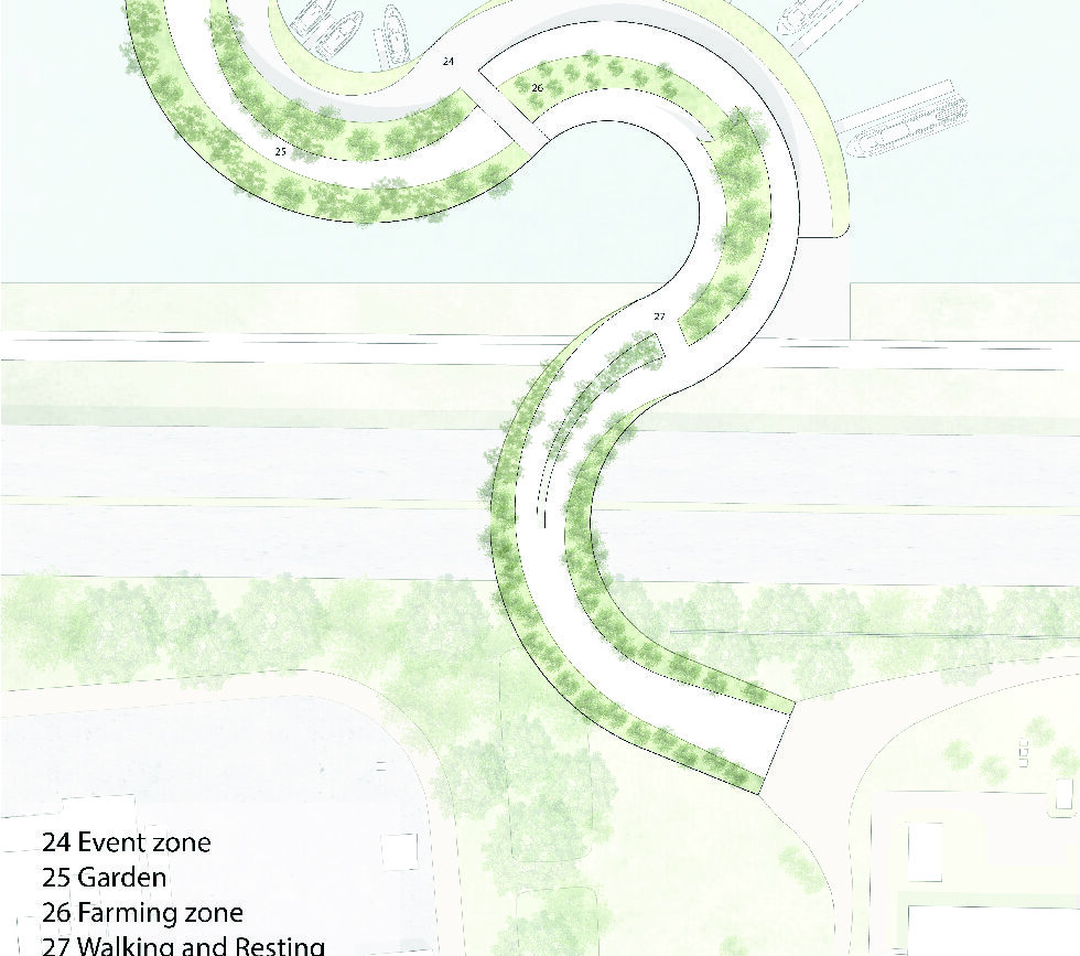 방사형 개념을 바탕으로 자연의 흐름과 리듬을 반영합니다. 녹색 경로도 동일한 방사형 패턴을 따라 구성되며, 사용자에게 끊기지 않는 자연의 흐름과 연속된 경험을 제공합니다.