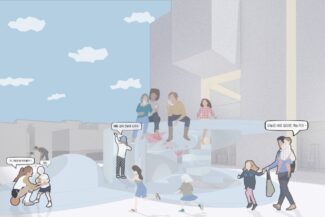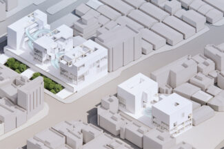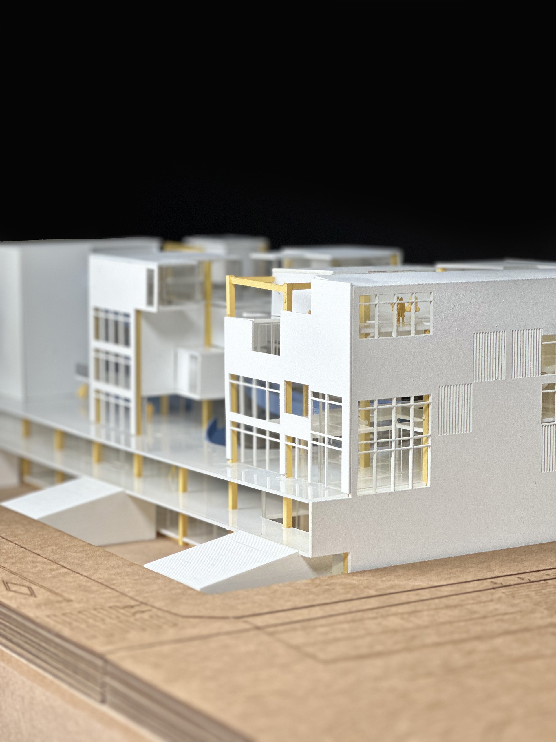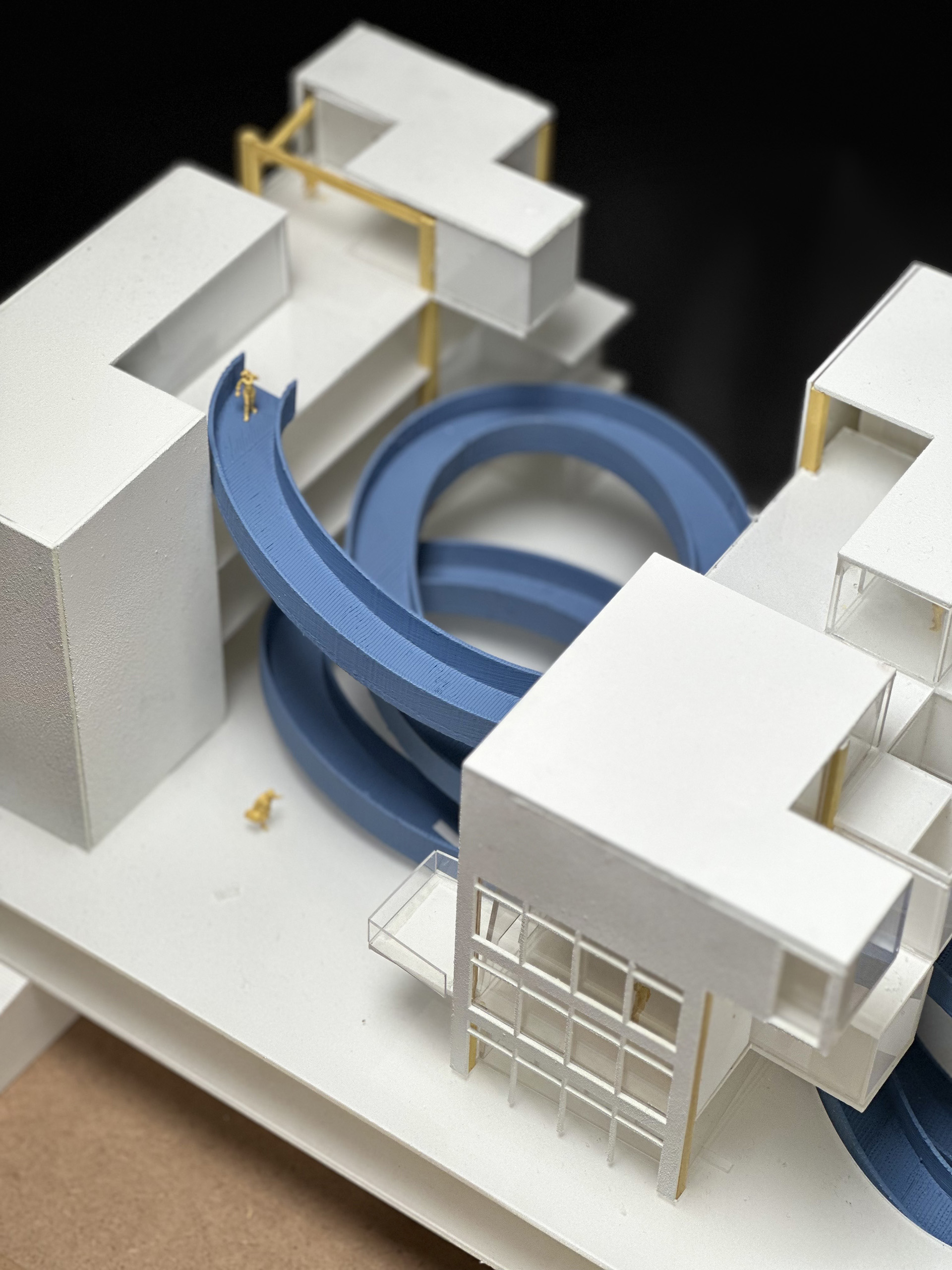 1층 매스와 선큰 정원을 삽입해 접근성과 입구성을 높여 도시적 맥락에서 매스와 도시의 소통을 유도한다.