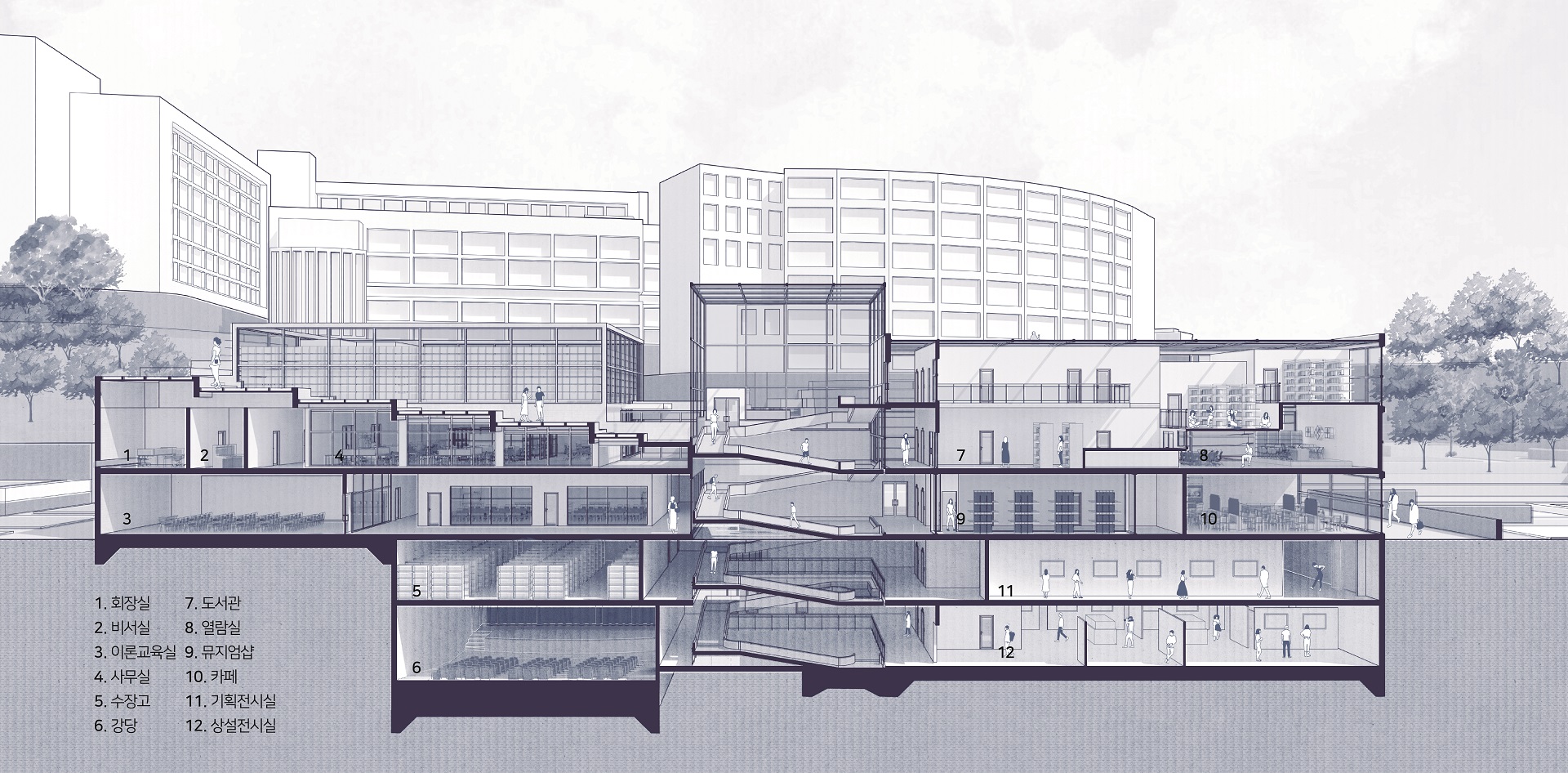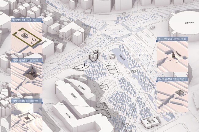 현재 장충단 공원은 근린공원으로 분리 되어, 남산 르네상스 정책과 맞물려 도심 속 허파 역할을 하는 도심형 녹지공원의 역할을 하고 있다. 이는 환경친화적 관점으로 도시에 많은 도움을 주고 있긴 하나, 장충단공원은 신라호텔, 엠버서더 호텔을 비롯한 고급 숙박시설, 동국대학교, 장충체육관의 중심에 위치하여 다양한 성격의 사람들이 유입될 수 있는잠재력이 있는 장소로 볼 수 있다. 이를 통해 기존 공원의 성격과는 다른 다양한 이벤트와 활동들을 경험할 수 있는 새로운 성격의 도심형 공원이 필요하다고 역설한다. 위 프로젝트에서 본인의 고향이자 의미있는 장소인 장충단공원의 다양한 역사적 자원들과 장소적 특수성을 활용해 장충단 근린공원을 역사공원으로 승격시켜 ‘Grid System’을 활용해 다양한 이벤트 및 활동들을 도입시키고, 더이상 권력에 따라 바뀌는 장소가 아닌 시민들이 함께할 수 있는 참여형 공원이 되게 한다. 또한 인근 한국현대문학관 통폐합에 과 함께 ‘장충 라키비움’ 건립을 통해 역사적 자원 및 컨텐츠들을 전시 및 소장하는 곳으로 만든다.