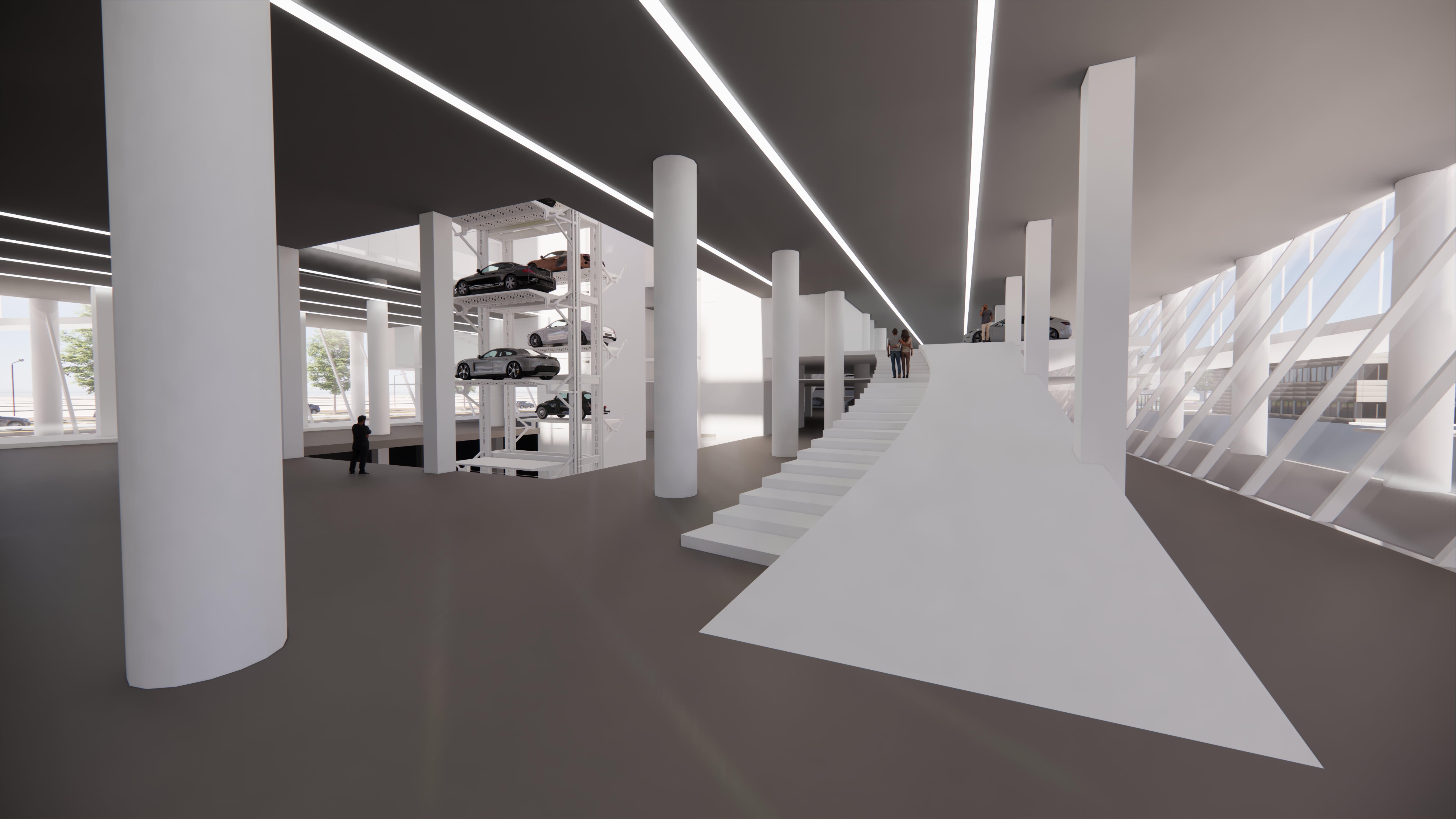 기존의 자동차 박물관은 도보를 통한 관람이 전부였지만, 램프를 통해 자동차 안에서도 관람이 가능하게 만들었다.