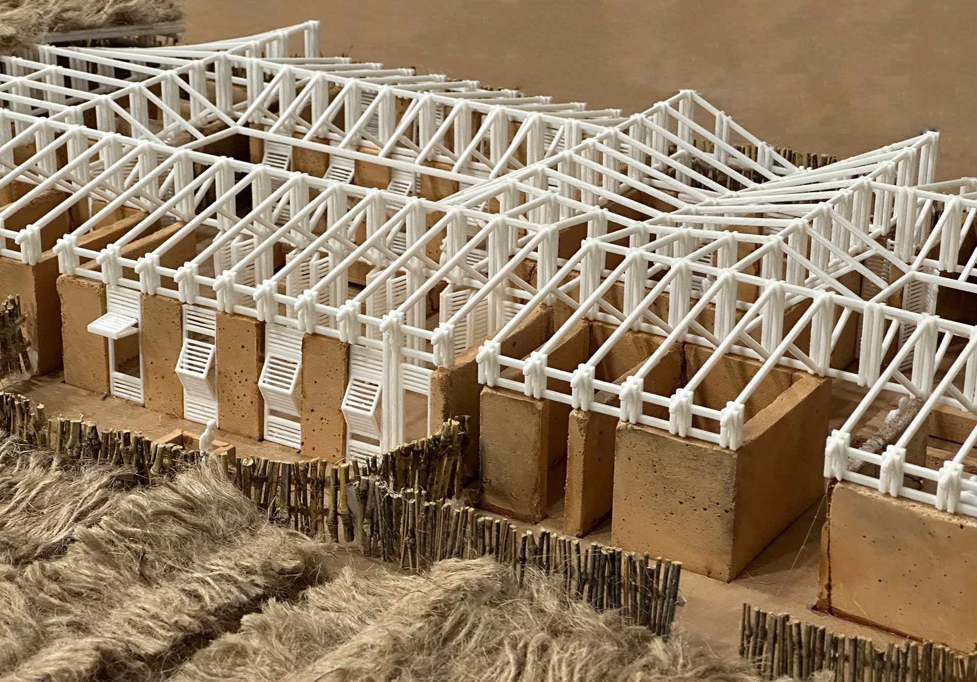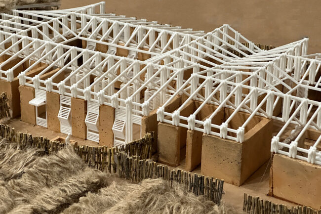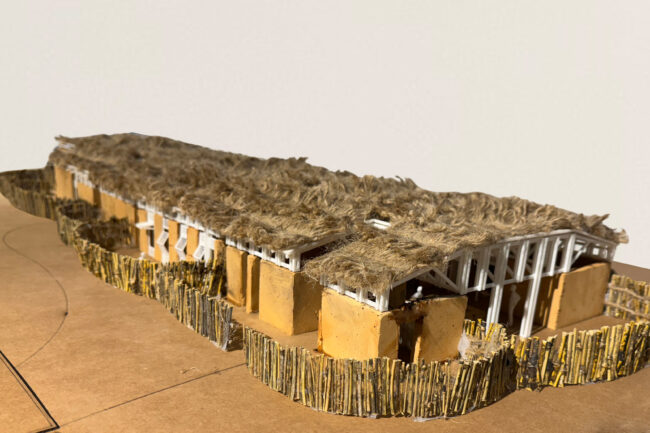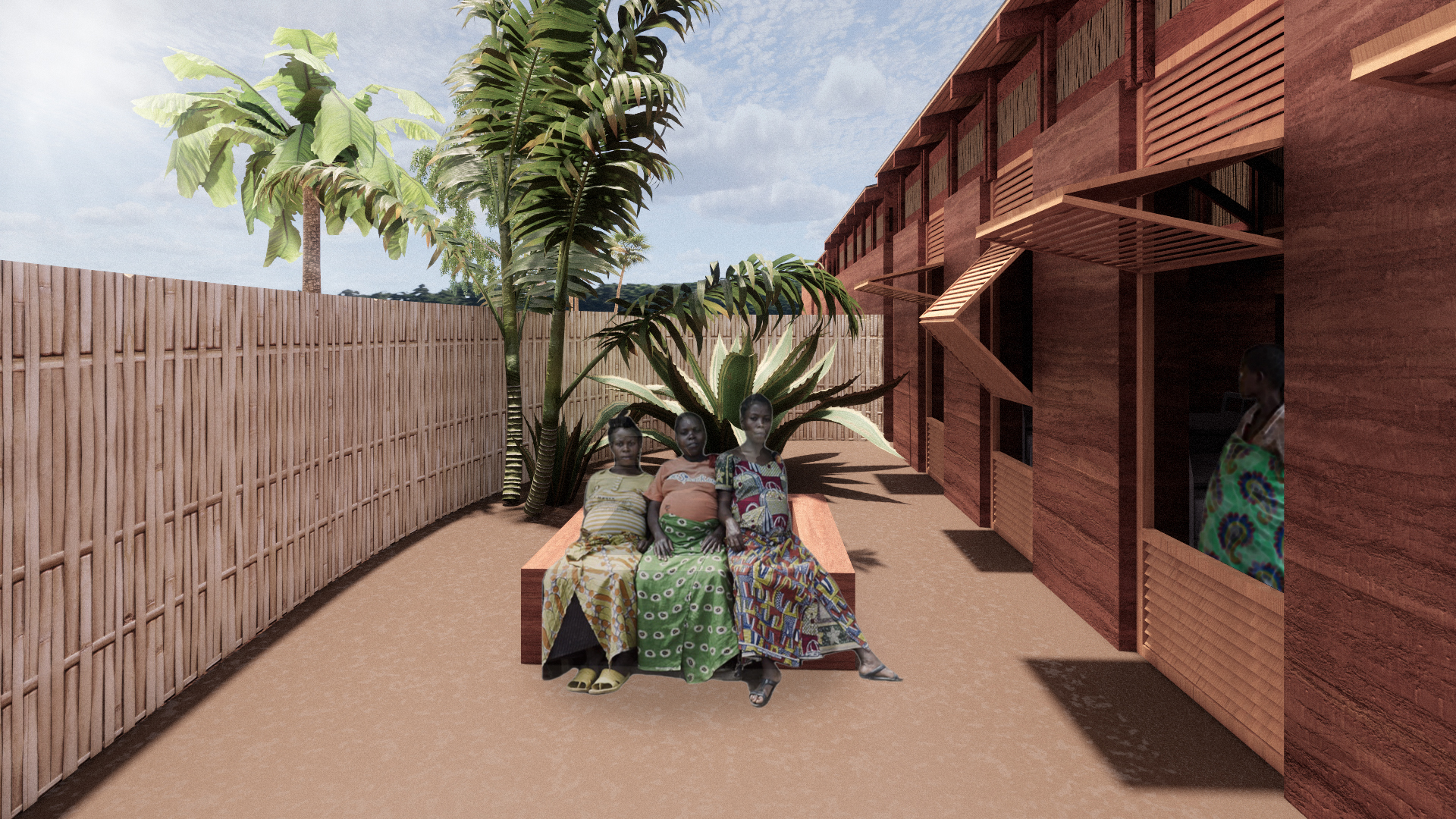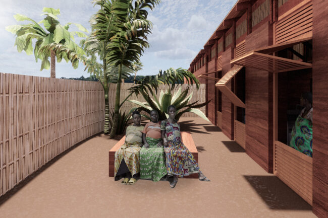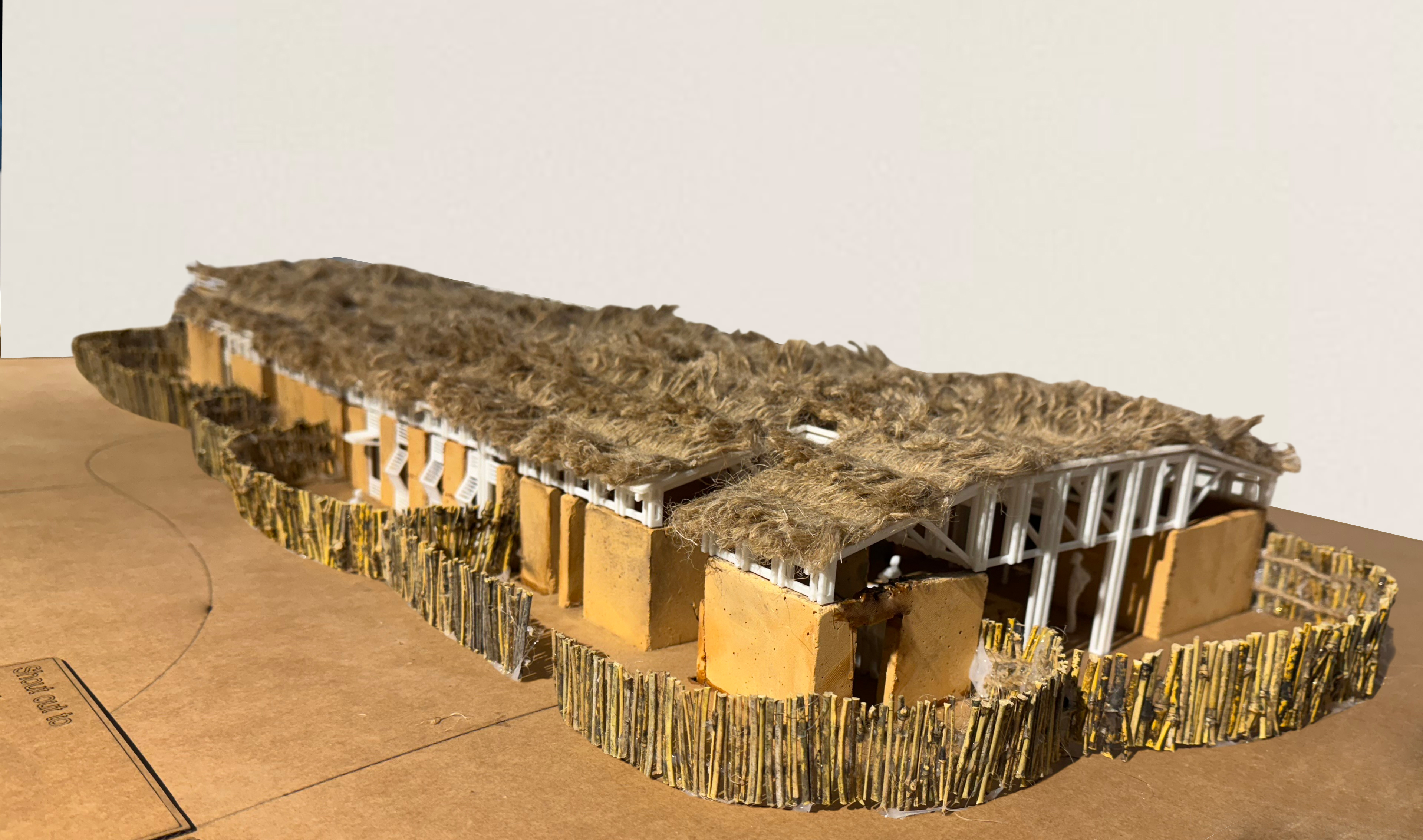 남부 세네갈의 전통 주택에서 영감을 받아, 우리는 임신한 여성들에게 따뜻하고 안전하며 편안한 공간을 제공하기 위해 현지에서 익숙한 재료를 활용했습니다. 벽은 흙으로 만들어져 있어 실내 온도를 쾌적하게 유지하고 외부 기후 변화에 적응할 수 있습니다. 지붕 지지대는 현지에서 쉽게 구할 수 있는 로즈우드를 사용했습니다. 지붕 구조는 디올라 부족의 집에서 흔히 볼 수 있는 야생 대나무와 내구성을 보장하는 방수 타포린 시트로 구성했습니다. 마지막으로, 전통적인 세네갈 주택을 연상시키는 짚으로 만든 초가지붕을 얹어 진정한 세네갈의 집 느낌을 살렸습니다. 이러한 접근 방식을 통해 지속 가능성, 경제성, 편안함을 제공하며, 현지 공동체가 익숙하게 사용하는 재료와 관행을 존중합니다.