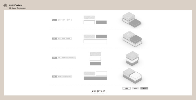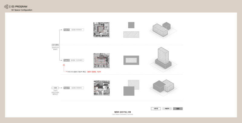 Trefoil Knot 형태에서의 동선과 공간 분리를 통해 법원의 보안과 업무효율을 높인 법원을 제시한다.