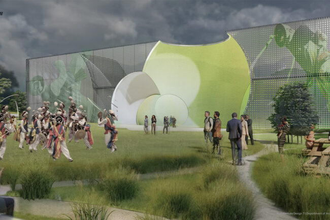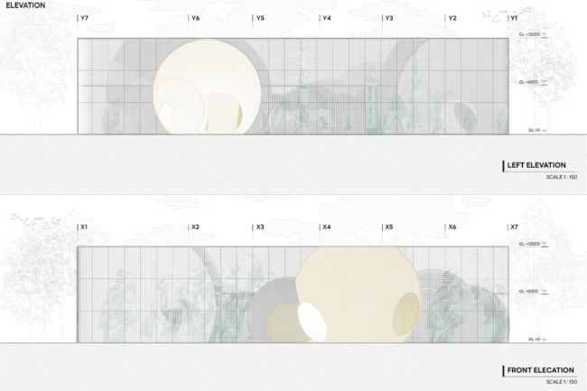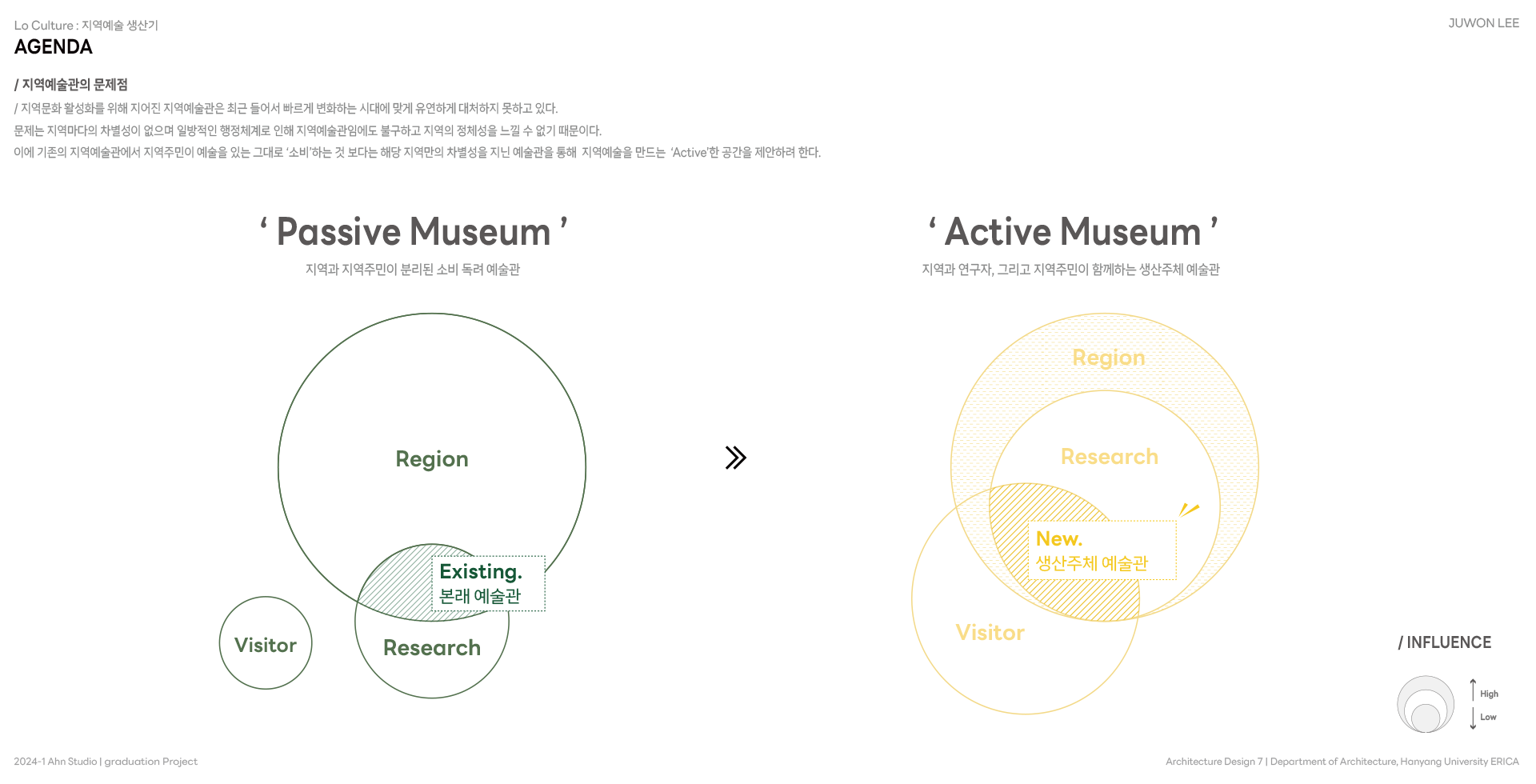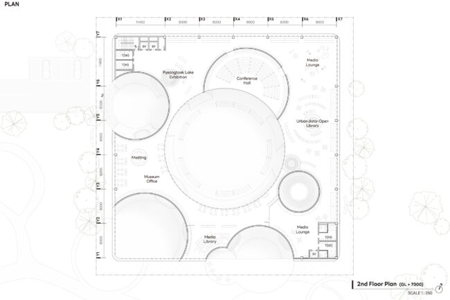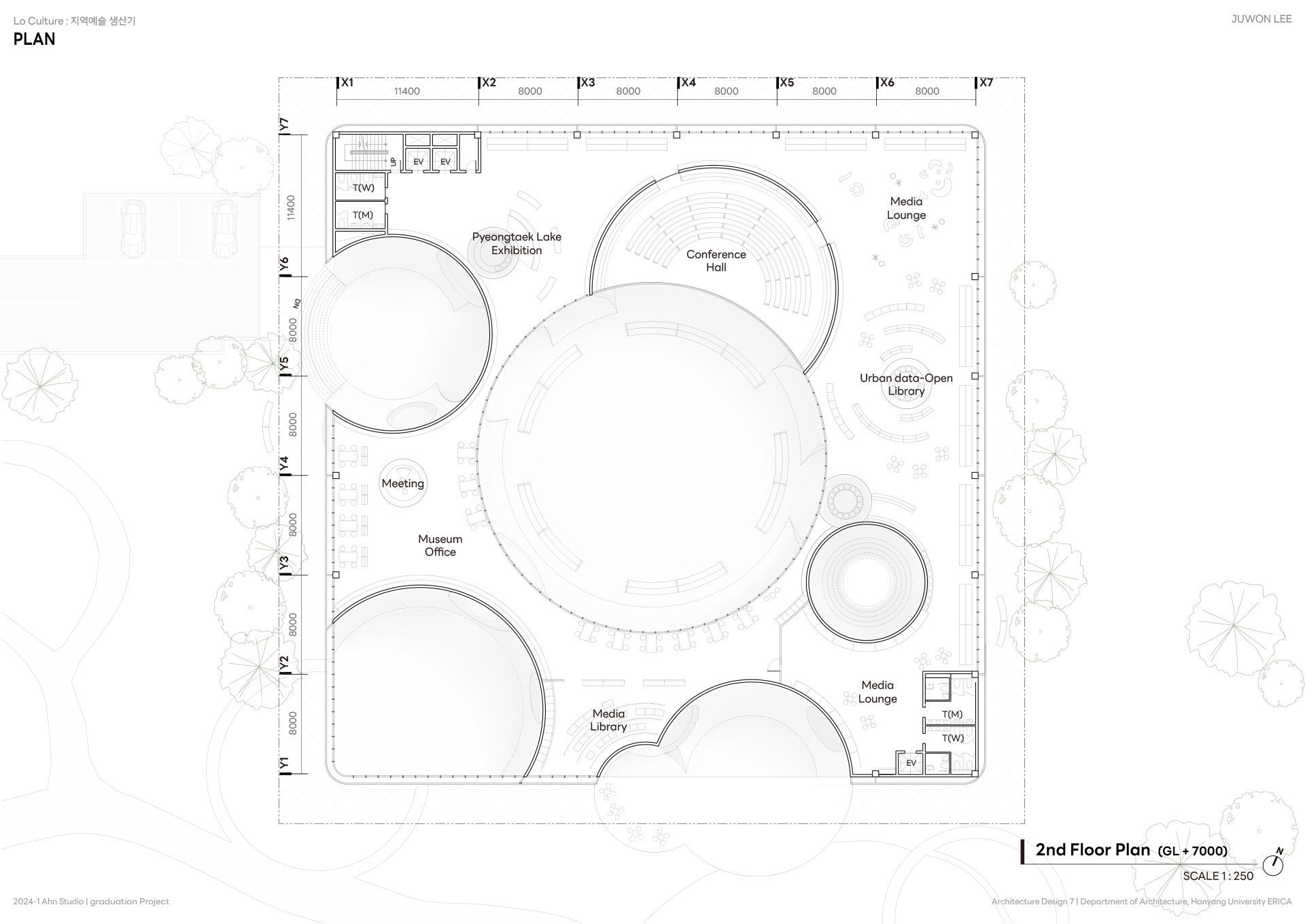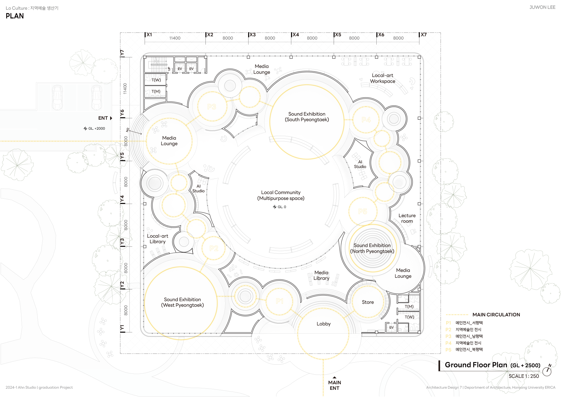 기존에 평택호 예술관으로 향하는 세 개의 길을 주축으로, 세 개의 길은 서로 어우러지면서 파장을 만들어내어 전시관 내부로 흘러 들어가 농악의 흐름과 연결된다.