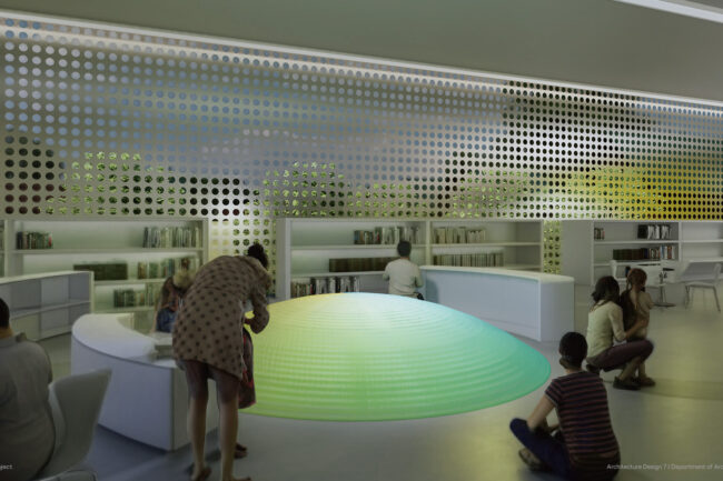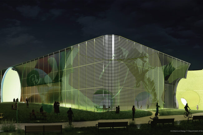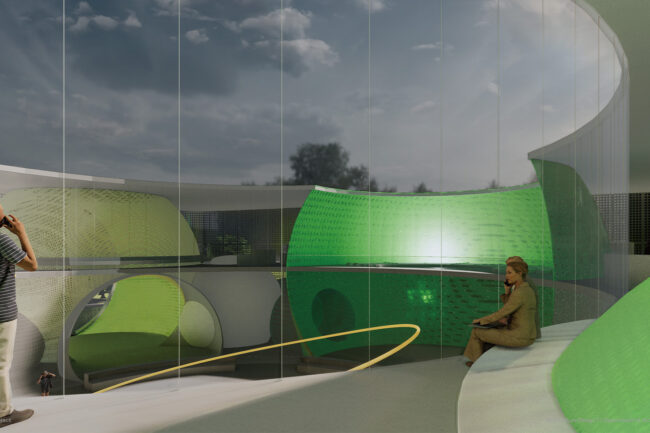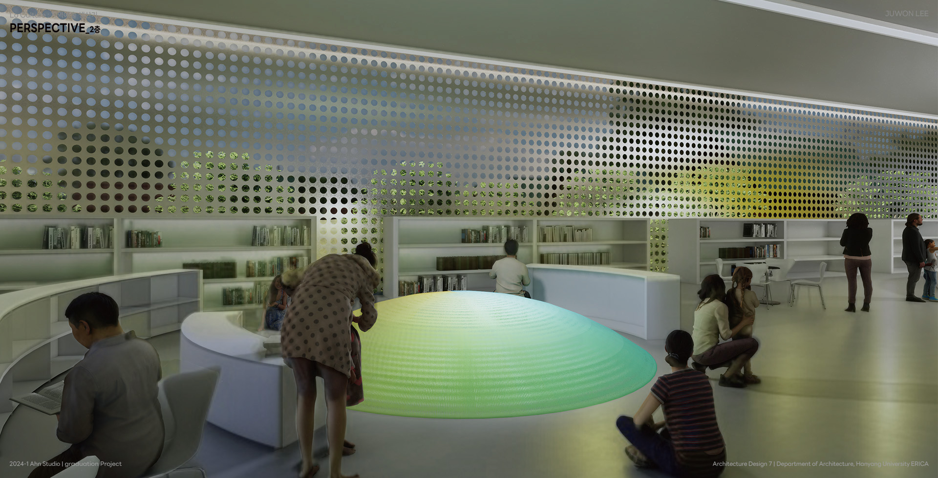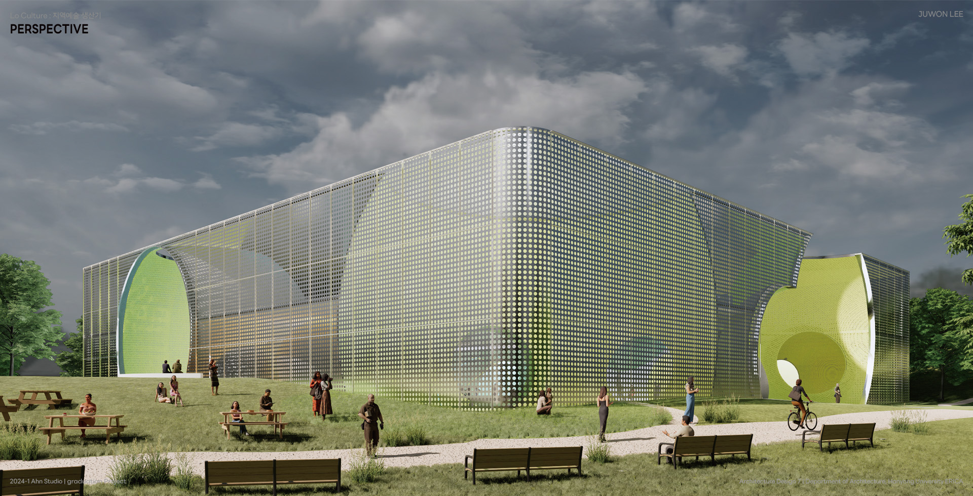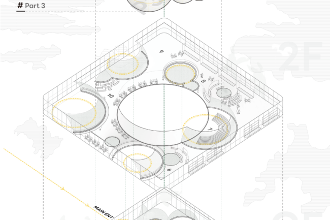 미디어 아트 전시관 내부에 활용되는 평택 농악의 흐름은 전시관 내부의 메인 전시 동선으로 활용한다. 농악을 차용한 공간은 각 쉘의 크기, 방향이 달라지면서 다양한 미디어아트를 수용할 수 있으며 농악에 대한 공간적인 체험을 하게 한다. 메인 전시를 이루는 쉘을 제외한 공간은 필요 공간으로서 도서관, 지역 예술 공간 등으로 활용되어 중심의 큰 커뮤니티 공간은 쉘과 필요 공간을 통합하는 지역 주민들의 소통 마당이 된다.
