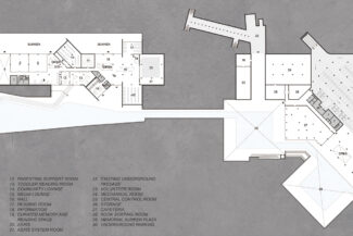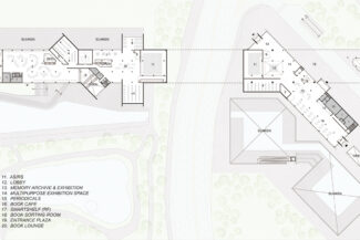 두 프로그램은 동일한 평면에 배치되고, 그 사이의 공용 공간은 분리보다 흐름에 집중한 구성으로 추모에서 일상으로의 점진적 전환을 유도한다.