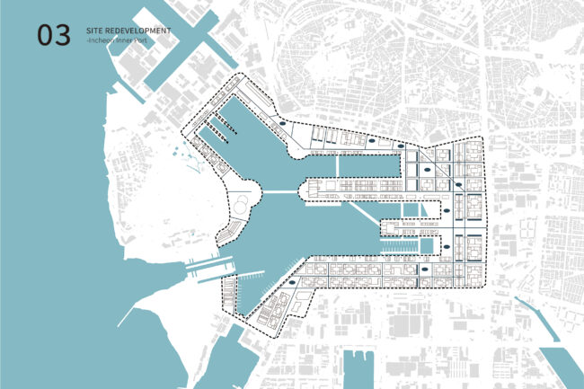 이 방치된 내항 공간을 다시 도시 맥락으로 통합하기 위해서는 전체를 아우르는 종합적인 마스터플랜이 필요하다고 판단했습니다. 이번 계획은 단절된 원도심과 바다를 물리적·기능적으로 재연결하고, 역사적 정체성과 공공성을 회복하는 것을 중요한 목표로 삼았습니다. 더불어 침체된 원도심에 새로운 활력을 불어넣기 위해, 미래 신산업의 거점을 만드는 데 중점을 두었습니다.