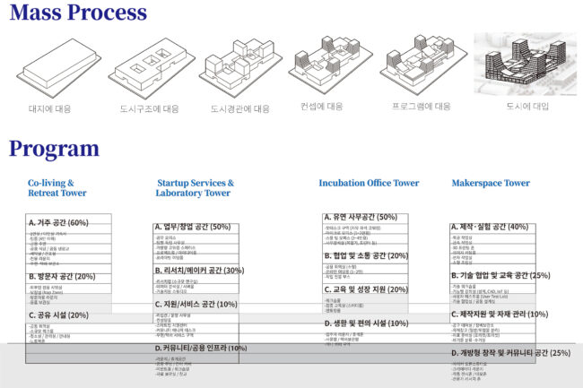 용도 : 스타트업 캠퍼스(업무시설, 실험 및 제작시설, 주거시설)