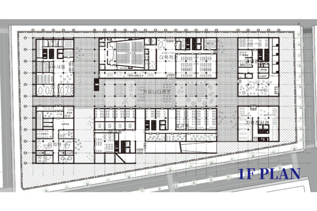 D동은 제작과 실험의 거점으로, 전체의 약 60%는 공용 제작 워크숍과 오픈 제작랩, 장비실로 구성되어 시제품 제작과 기술 실험이 이루어집니다. 약 25%는 제작 교육실과 프로그램실로, 입주자와 외부 참여자가 함께 활용할 수 있도록 계획됩니다. 나머지 15%는 제작된 결과물을 전시하고 교류할 수 있는 전시·커뮤니티 존으로 구성됩니다. D동은 외부에도 열린 제작 허브로 작동하며, 지역과 연결되는 커뮤니티 역할을 합니다.