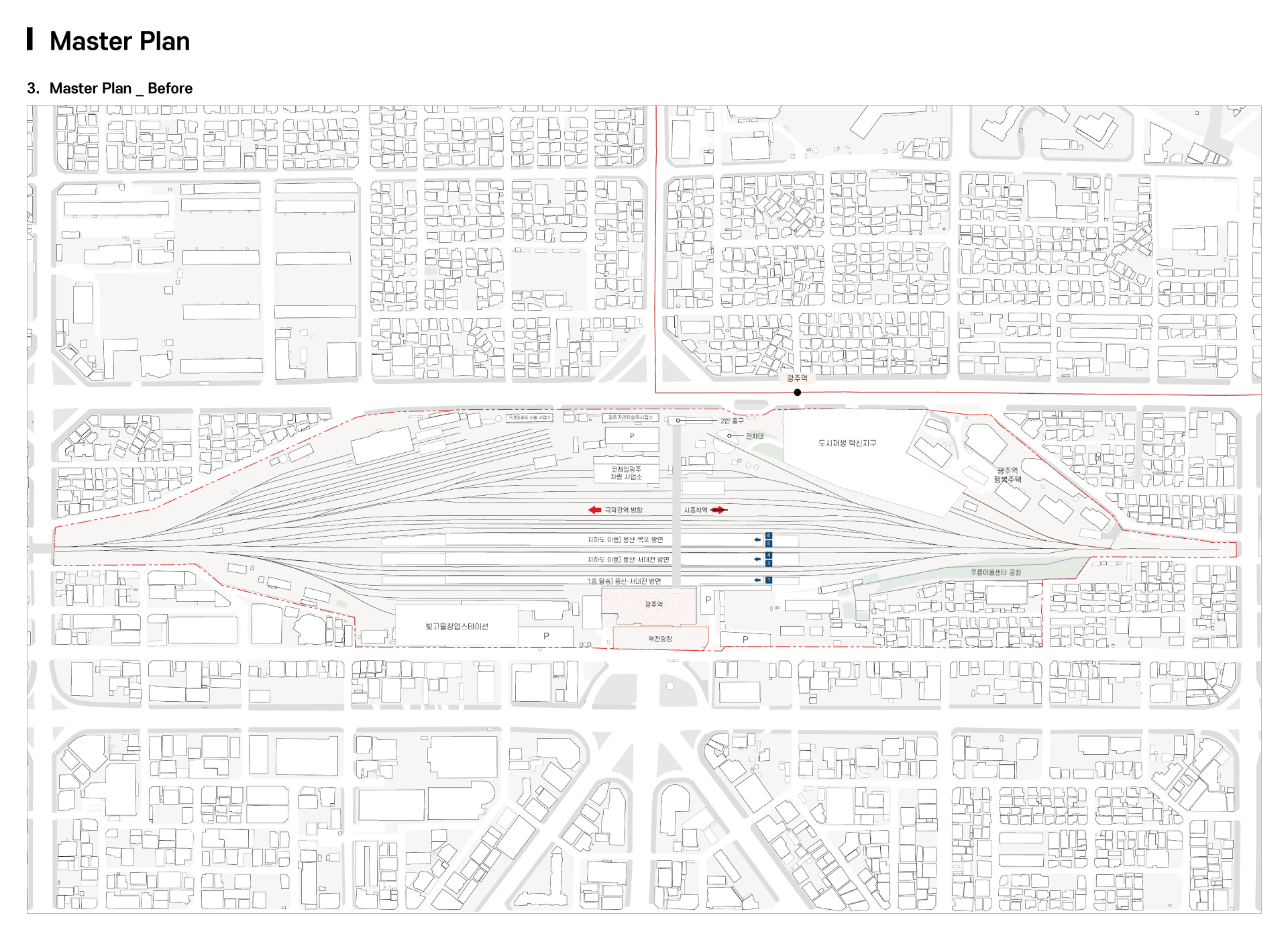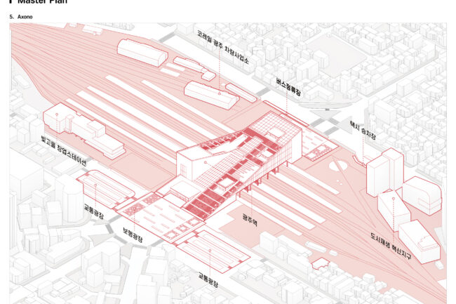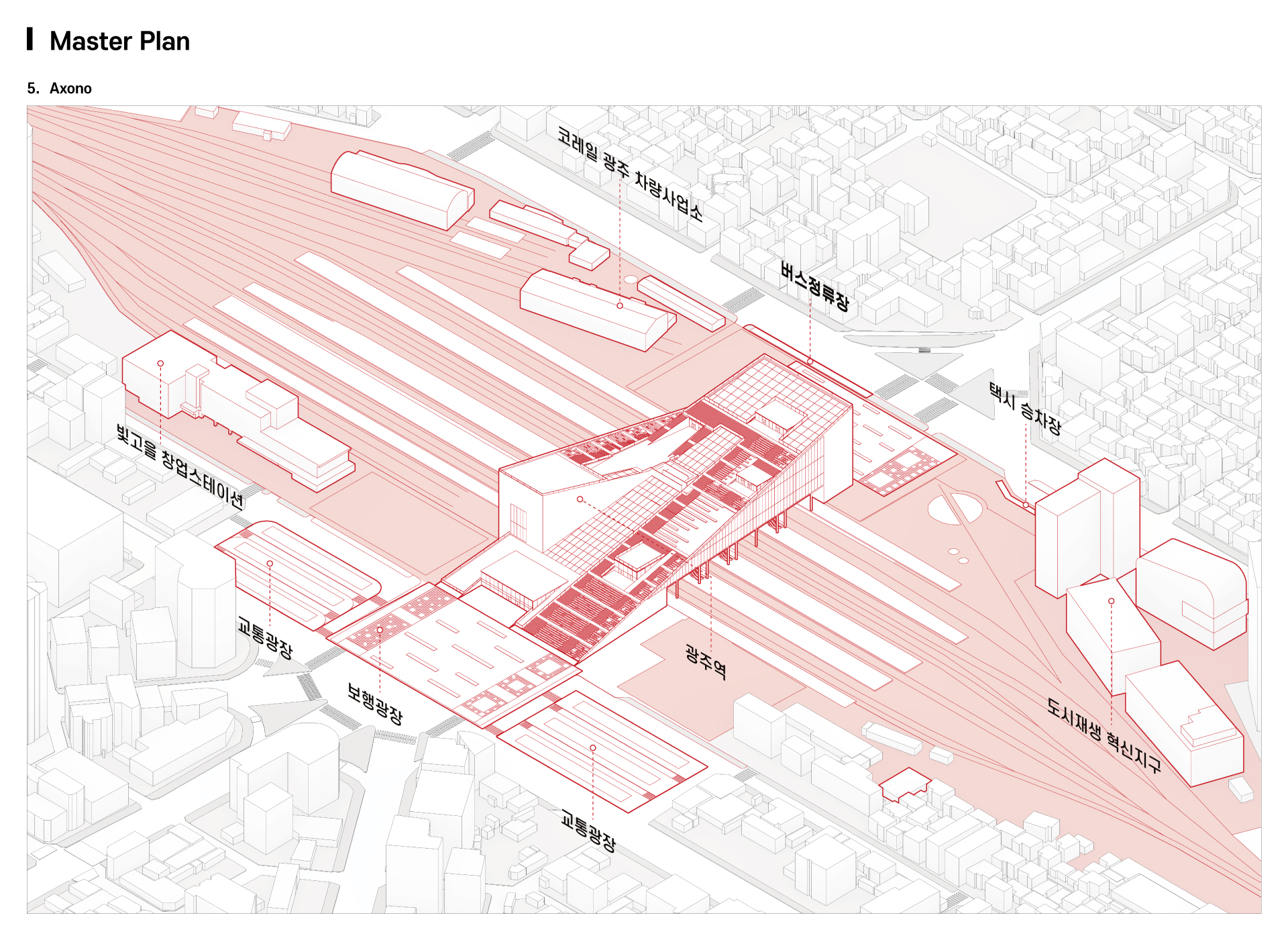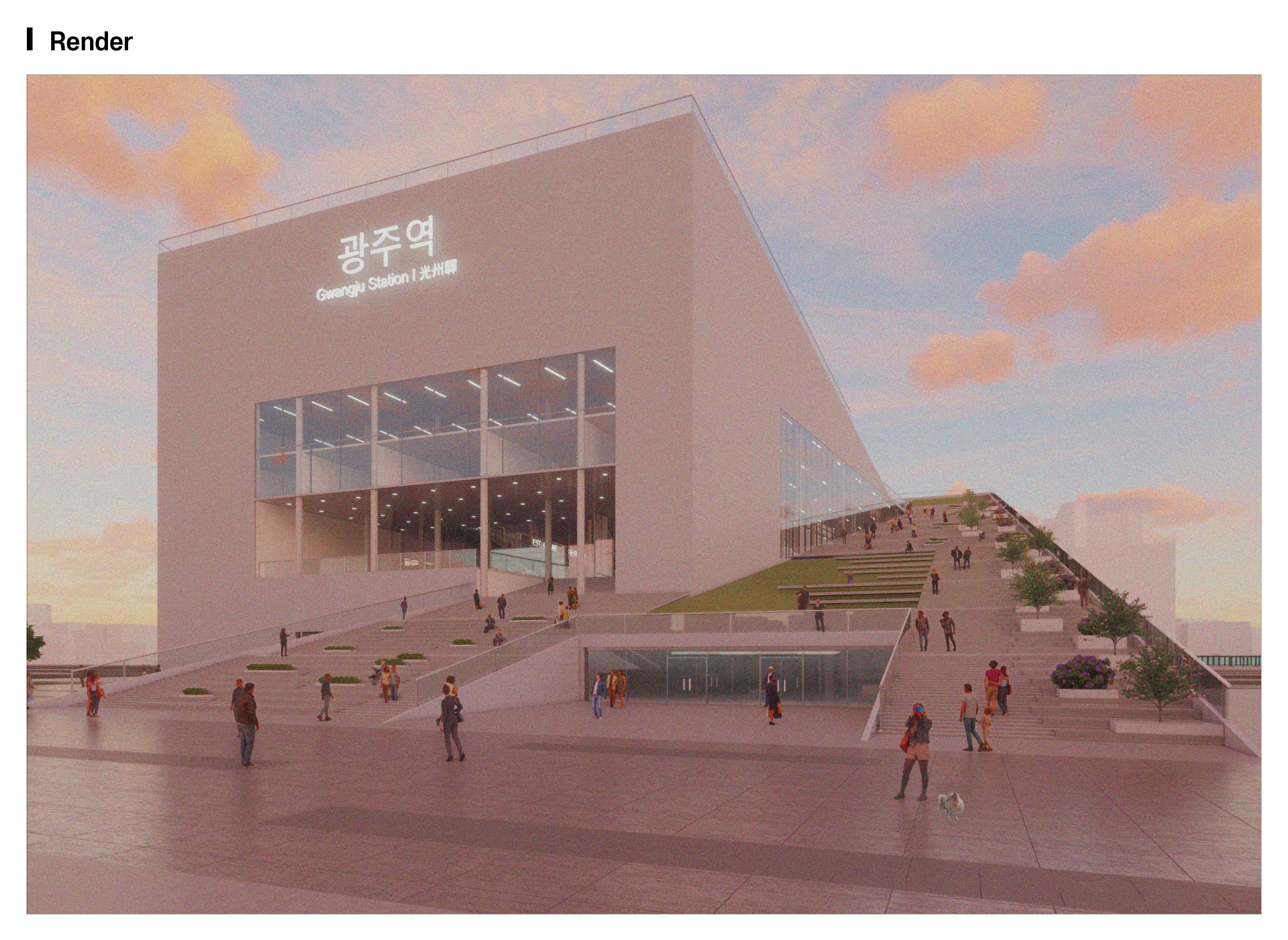 그래서 광주역의 철도 역사 기능을 복원하고, 보행 환경에 초점을 맞춰서 광주역이 광주의 새로운 랜드마크로 작동할 수 있는 방향으로 프로젝트를 진행하였다.