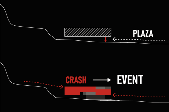도심의 조밀한 조직 속, 중심부에 거대한 절벽이 인위적으로 자리하고 있다. 도시의 자연스러운 흐름과 어긋난 이 절벽은 오랜 시간 동안 압도적인 스케일과 경관으로 주변을 지배해왔다. 그러나 그 형태적 한계로 인해 어떠한 기능도 정착하지 못했고, 시공과 철거가 반복되는 불안정한 시간을 견뎌야 했다. 긴 시간 동안 이곳을 지켜온 것은 허름한 불법거주시설과 그로인해 발생하는 어려움이었다. 현재에도 폐기물 중간처리 시설과 기동대가 들어서 있으나 여전히 노후한 모습으로 남아있다.