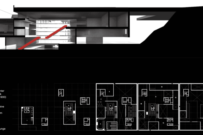 도시의 흐름에서 밀려난 절벽은, 오히려 시간이 머물고 기억이 퇴적된 장소이다. 그러한 단면을 해체하고 다시 조립하는 과정은, 마치 ‘채석’처럼 공간을 새로이 조각하는 행위가 될 것이다. 과거의 채석장은 그 자체로 시간의 단면이다. 그 위로 다시 새로운 기억을 쌓을 수 있도록, 이곳에 기억을 응축하고, 감정을 머무르게 하며, 시간의 층위를 만들어갈 도서관을 제안하고자 한다.