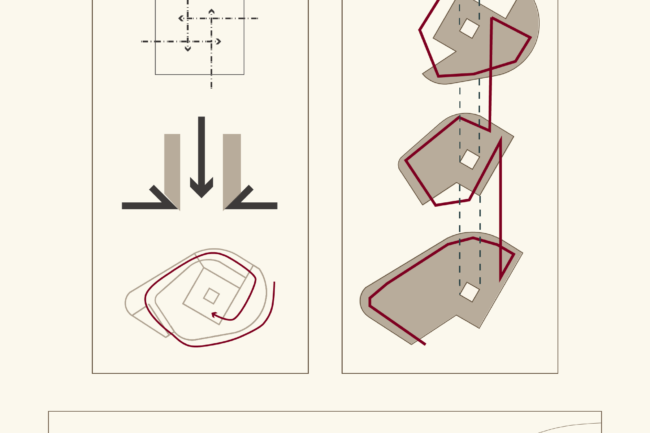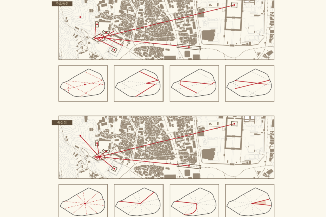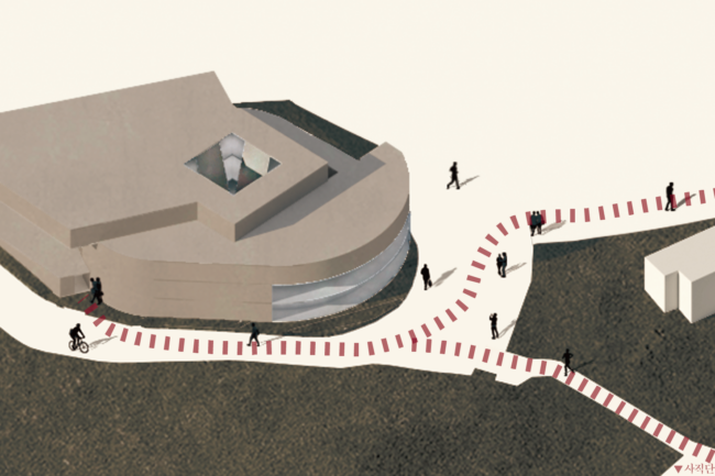 1. 외부에서 내부로 말려들어오는 나선형 구조를 그리고, 사직단의 힘을 담는 정방형의 그릇을 중심부에 위치한다. 정방형의 공간은 사람들은 내밀하게 모여들고, 하늘의 빛을 직접적으로 받는다.