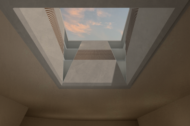 2. 하늘의 빛을 받는 정방형의 공간은 열람실로써 모든 층이 같은 면적으로 공유하고 있고, 곧바로 진입하게 하는 것보다 말려들어가는 수직동선을 통해 이용자들이 보다 내밀하고 차분한 마음을 가질 수 있는 시퀀스를 꾀한다.