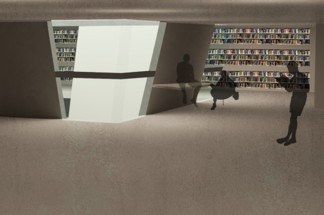 그에 대한 수단으로 예로부터 진리를 탐구하는 공간의 기능을 했던 도서관을 차용한다.