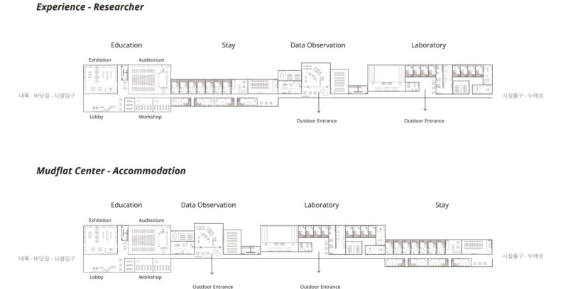 이러한 공간들이 갯벌과 밀접하게 위치하여 복합적으로 존재할 수 있을까? 단순히 전시 위주의 공공시설, 내륙에 위치해 환경에 도움이 되지 않는 건물로 존재하는 것이 아니라, 적극적으로 환경문제를 경험하고 환경에 도움이 되는 공간으로 변화할 수 있다.