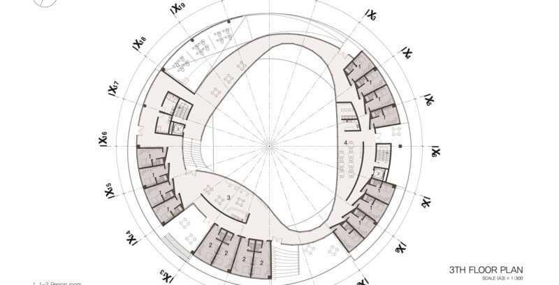 바다에서 가장 넓은 접촉면과 파노라마 뷰를 만들 수 있는 방법은 원형의 형태로, 여러 형태들 중에서 표면적이 가장 작은 형태이고, 어떠한 축이 있는 것이 아니라 원형의 형태로 내부에서 순환하고자 했다.
