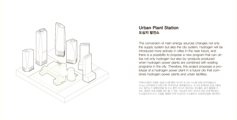 발전시설이 도심지에 위치하는 만큼 혐오시설로 자리 잡아서는 안 되기 때문에 주민들이 함께 이용할 수 있는 프로그램과 기존 사이트 내에 존재하던 화석연료의 상징적인 건물인 주유소를 대체할 친환경적인 프로그램을 제안했다.