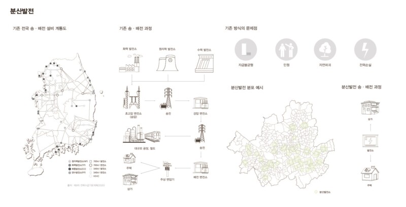 우리나라의 기존 에너지 시스템은 대규모 발전소 기반의 집중형 발전 방식을 따른다. 해안가에 있는 발전소에서 전력을 생산하고, 송/배선 시스템을 거쳐 원거리에 있는 소비자에게 전달하기 위해 선형 위주의 전국적 네트워크가 구축되어 있다. 하지만 이러한 발전 방식은 송전탑과 고압 송전선로 건설에 따른 민원과 환경문제, 지역간 전력 자급률의 불균형, 공급의 안정성, 장거리 송전의 전력 손실 등의 문제를 지속적으로 일으켜왔다.