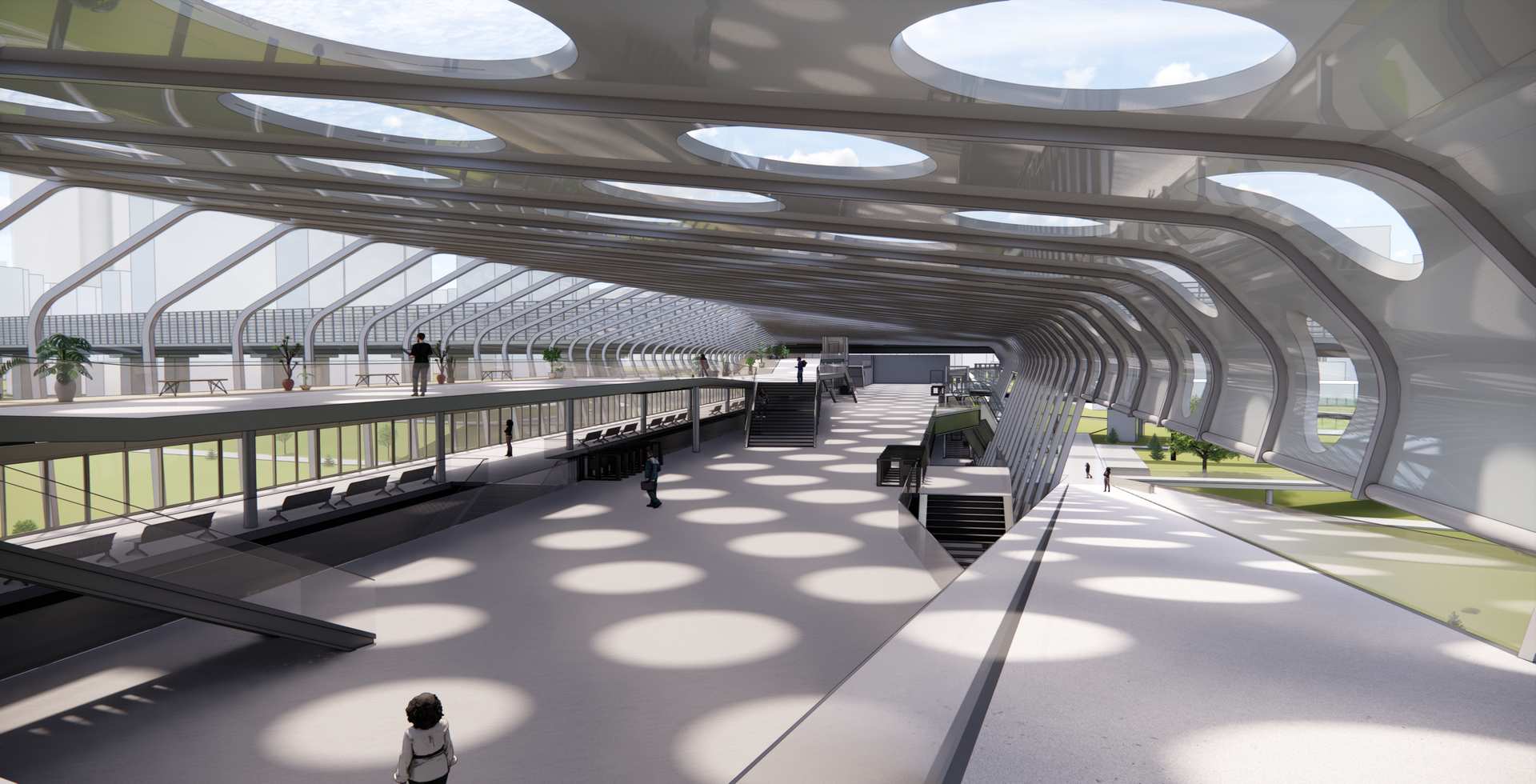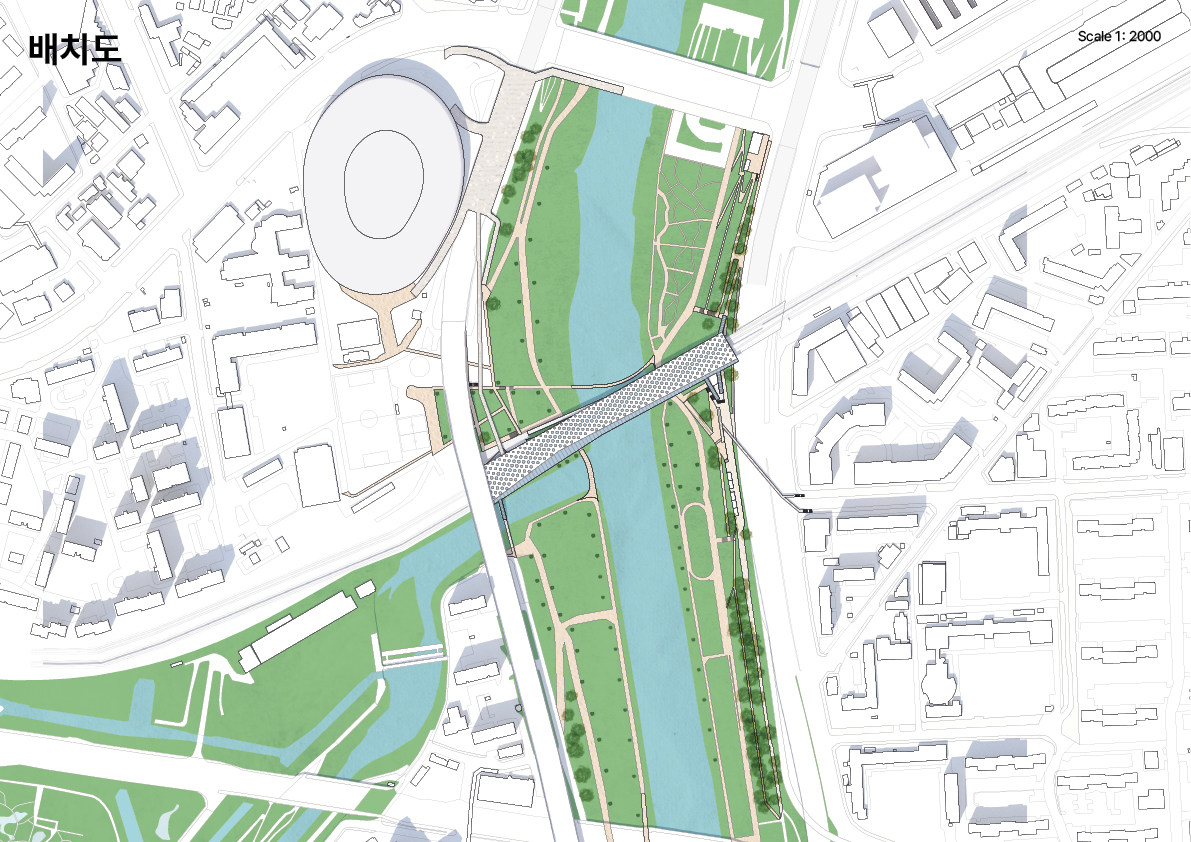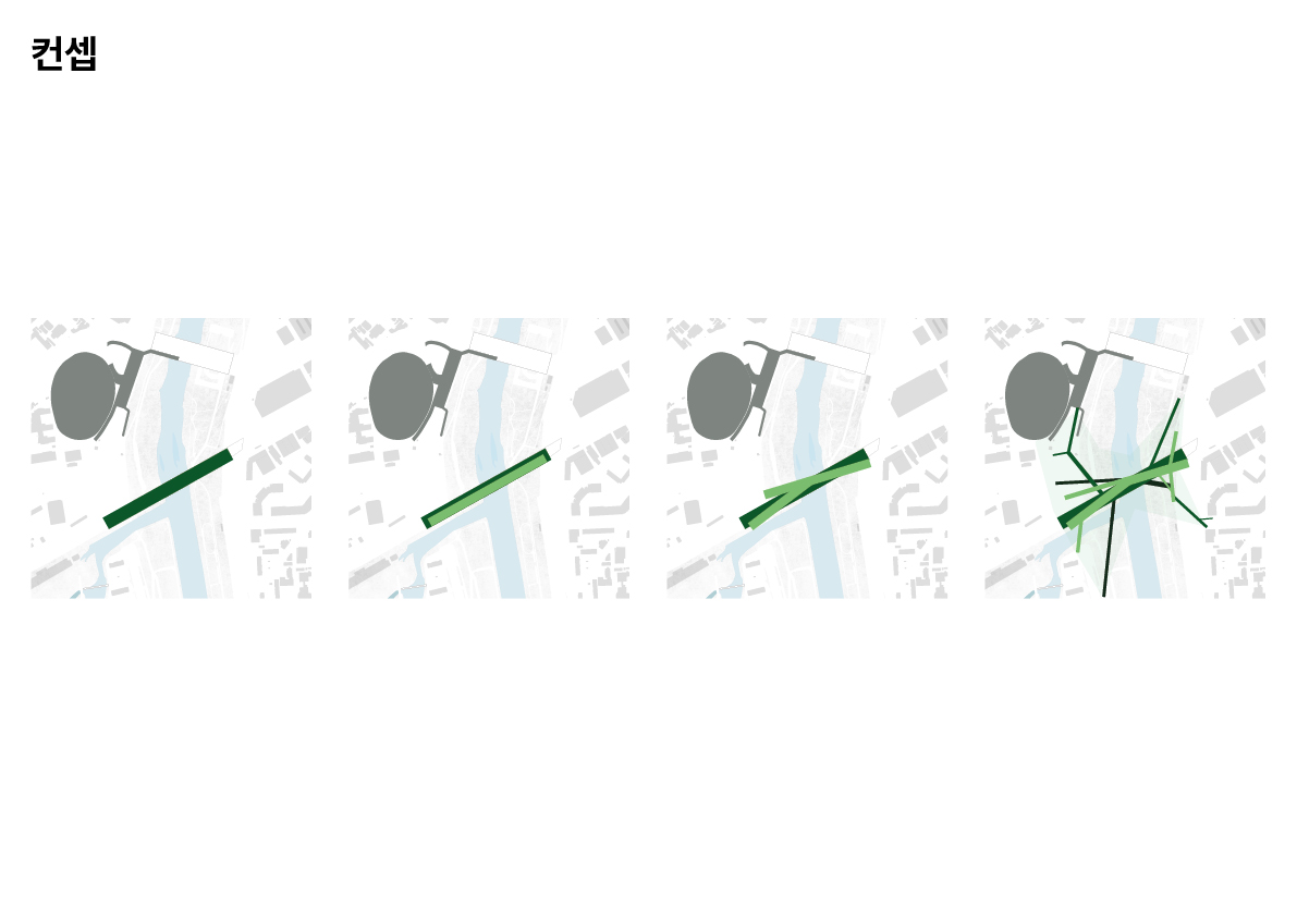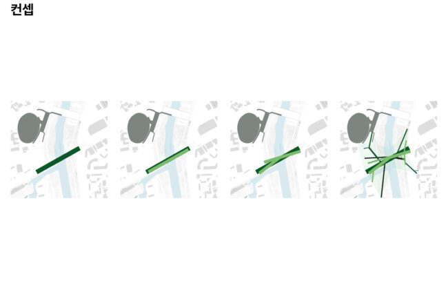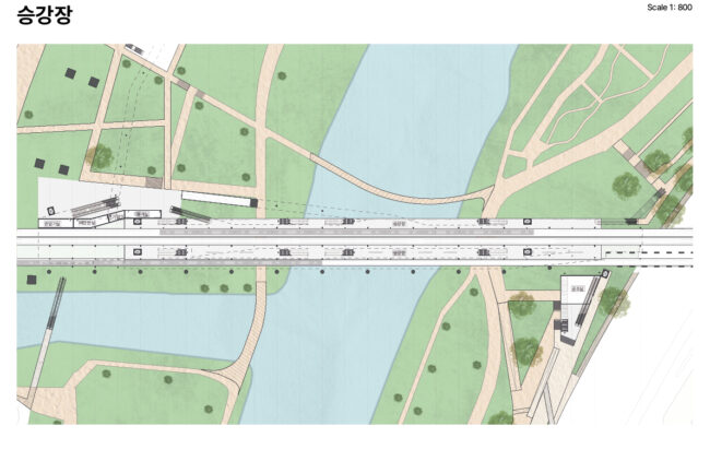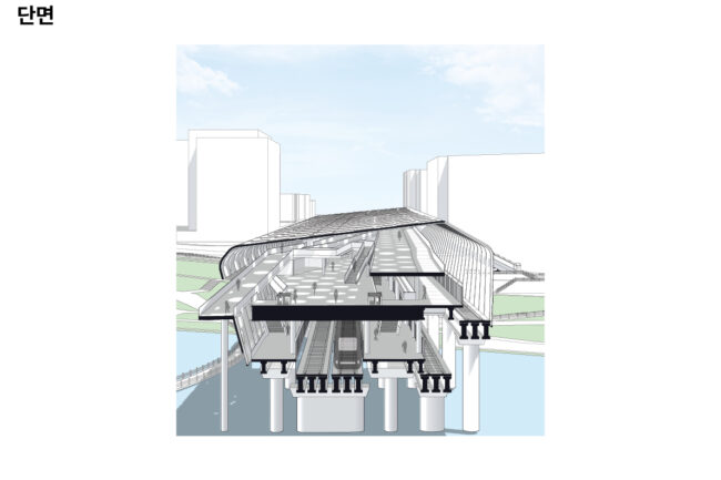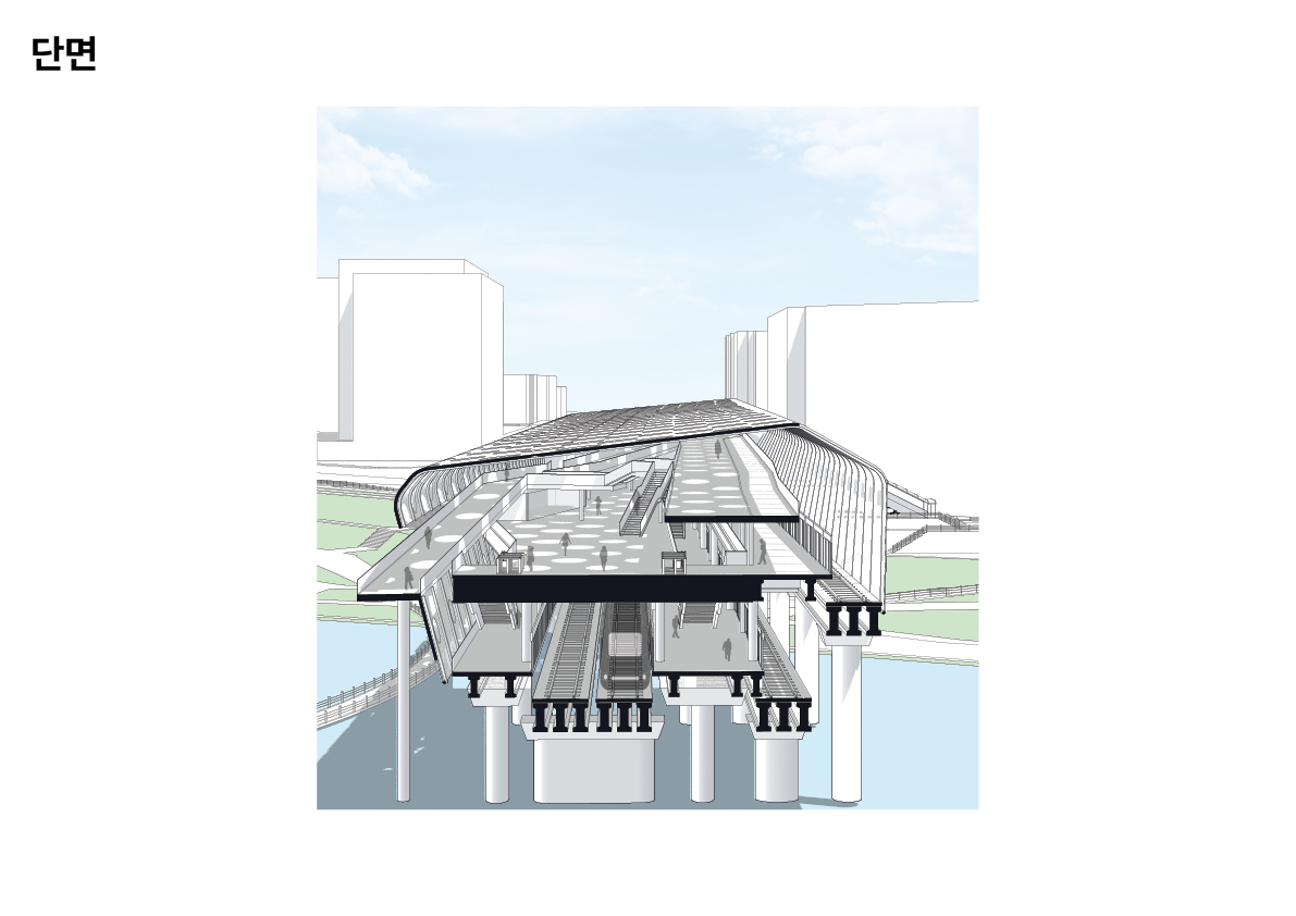 이 프로젝트에서는 이런 문제들을 해결하고 하천 위 역이라는 특성을 살리기 위해 주변을 다방면으로 연결해주는 중심점이 될 수 있는, 일종의 보행-환승역과 같은 공간을 제안하려고 한다.