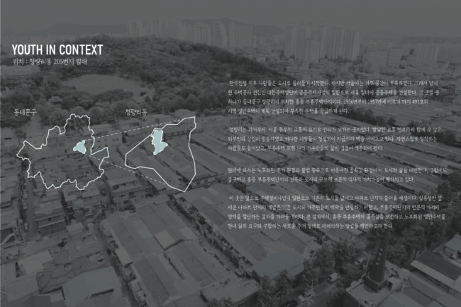 부흥주택단지가 위치한 청량리는 과거부터 거대한 교통 인프라와 상권이 이어져왔고 여러 거주민들의 삶이 겹겹이 적층 되어 왔다.