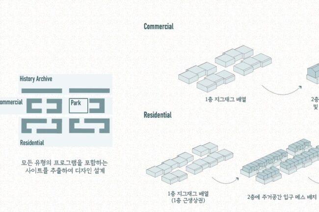 본 설계에서, 홍릉 부흥주택의 골목길을 보전하고 노후화된 영단주택을 현대 삶의 요구와 부합하는 새로운 주거 형태로 재해석하는 방법을 제안하고자 한다