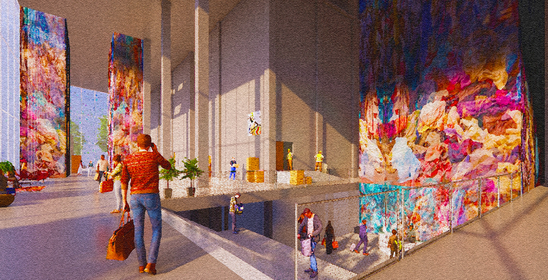 건물에서 가장 강조되는 부분은 외부로 노출된 의류 코어와 1층 폐기물 컬렉팅 공간이다. 1층에서 하역되는 폐기물들은 지하 1층으로 내려가 검수와 분류 과정을 거치고 새활용과 재활용으로 구분되어 건물의 2층 이상의 공간으로 운반된다. 전 운반과정을 9개의 수직적인 유리 의류 코어(층간)와 폴딩된 Clothing Conveyor(층내)로 노출시켜 디자인을 진행하였다. 1층 공간은 후면의 하역장과 전면의 로비공간, 소비자 드랍오프로 구분할 수 있으며, 유리 코어의 강조를 위해 약 12m의 높은 층고의 대공간으로 구성되었다. 상부 공간의 팩토리와 워크샵은 커튼월로 외부에 개방하고, 제작 공간에 침투된 형태인 패션쇼장, 업사이클 마켓, 익시비젼, 라이브러리와 같은 문화 공간은 불투명 유리(유글라스)로 처리하여 두 공간 사이의 성격을 대비하였다.